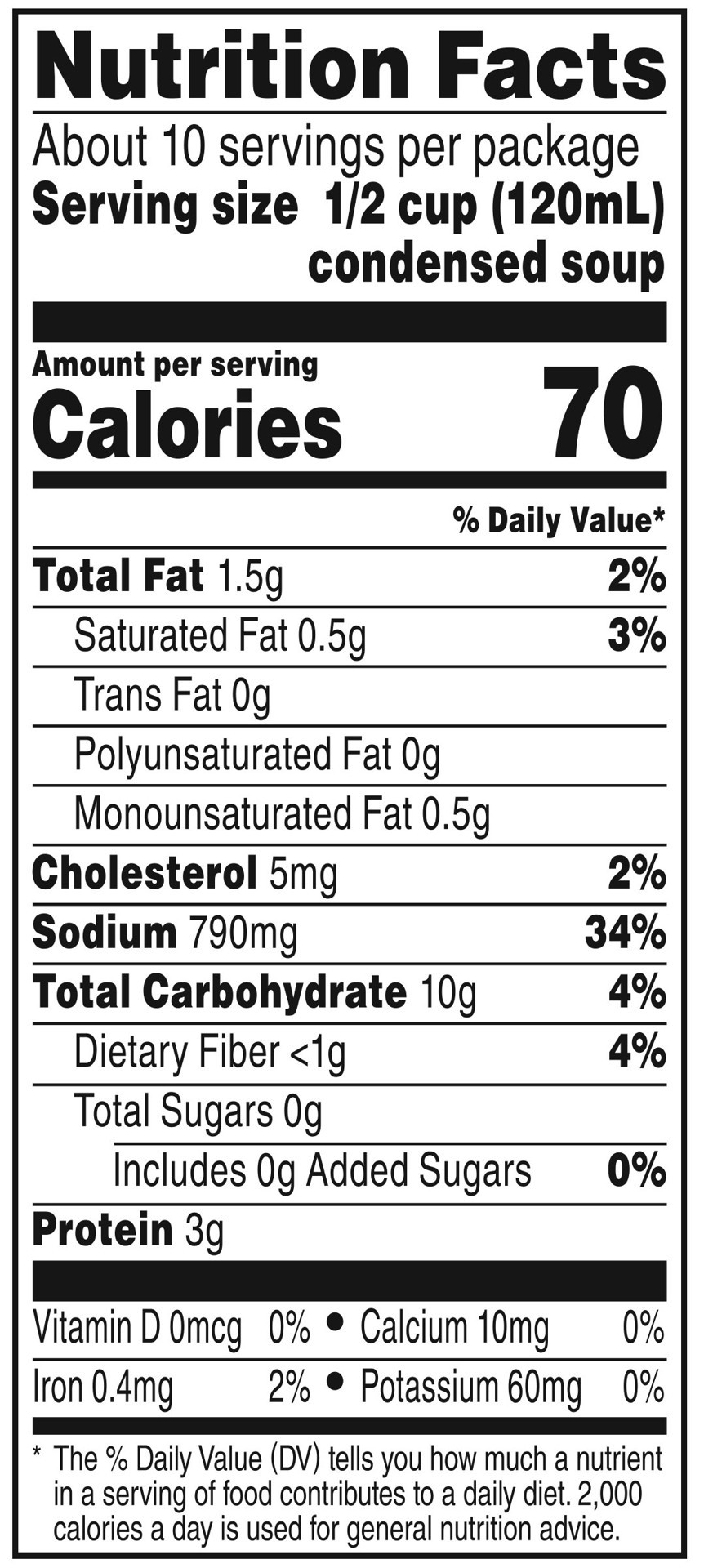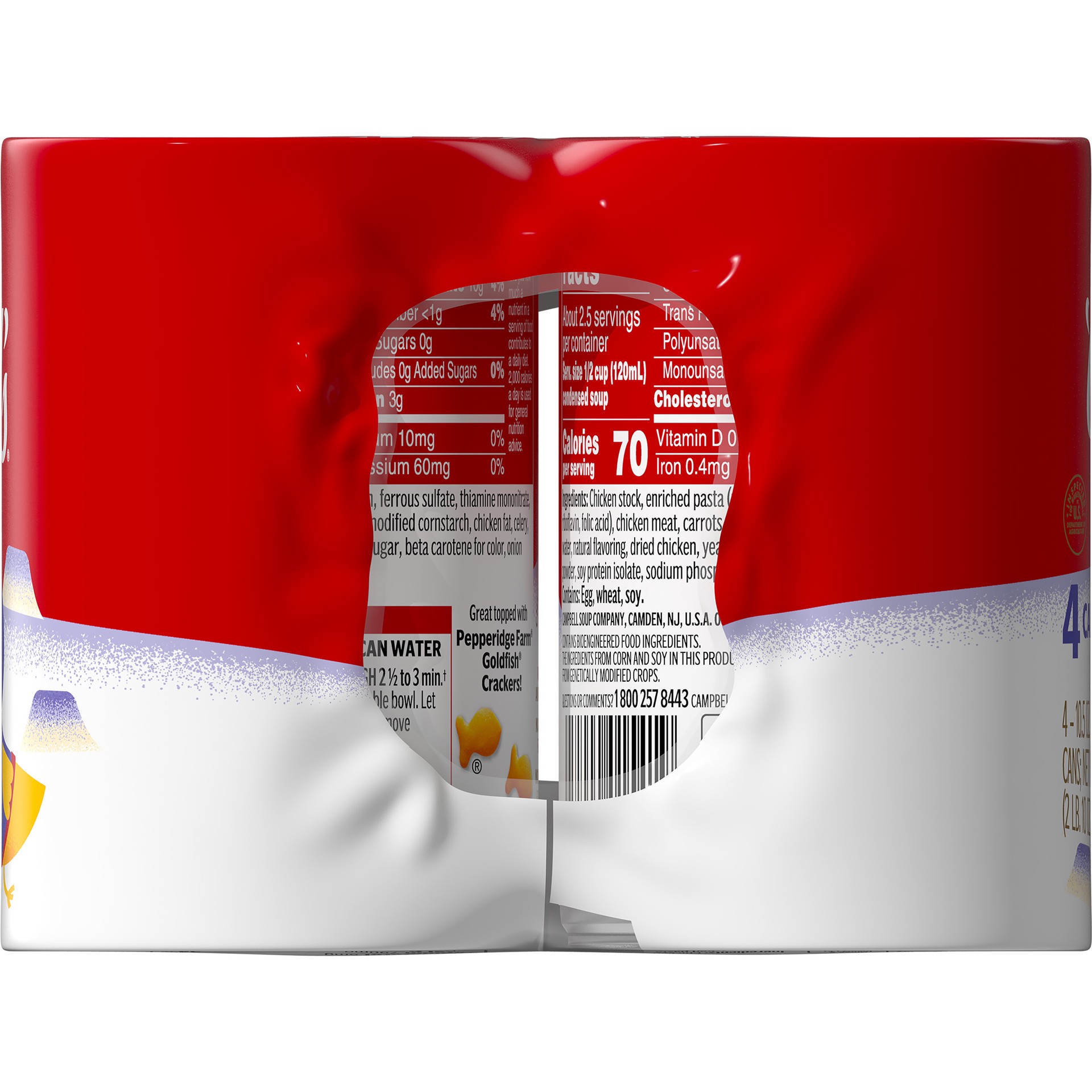 INGREDIENTS: CHICKEN STOCK, ENRICHED PASTA (WHEAT FLOUR, EGG WHITES, NIACIN, FERROUS SULFATE, THIAMINE MONONITRATE, RIBOFLAVIN, FOLIC ACID), CHICKEN MEAT, CARROTS, CONTAINS LESS THAN 2% OF: SALT, MODI…