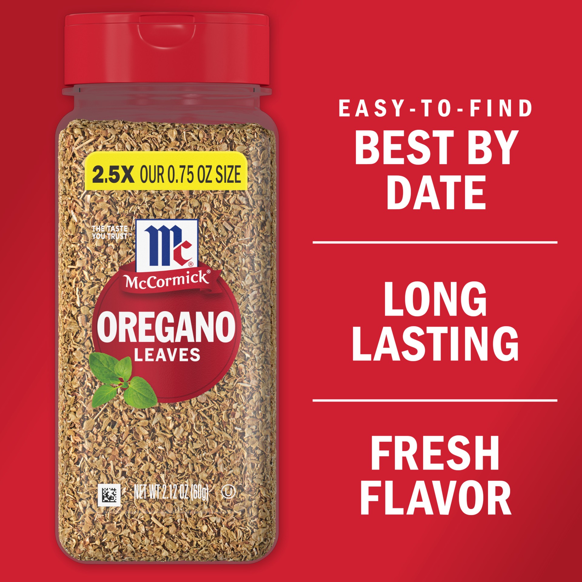 McCormick Oregano Leaves are carefully selected for robust flavor. Our oregano has a peppery bite and a sweet, slightly minty aroma that's perfect for tomato-based dishes like spaghetti sauce and mine…