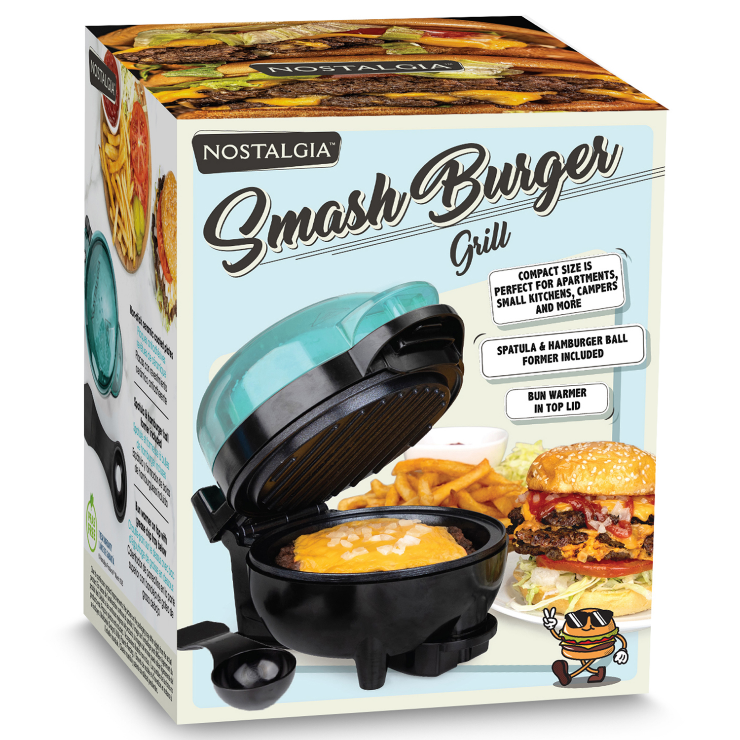 Sizzle up mouthwatering smash burgers using the 600 Watt Mini Smash Burger Griddle and Bun Warmer by Nostalgia! Pair crispy yet juicy smash burgers with warm buns using the bun-warming features includ…