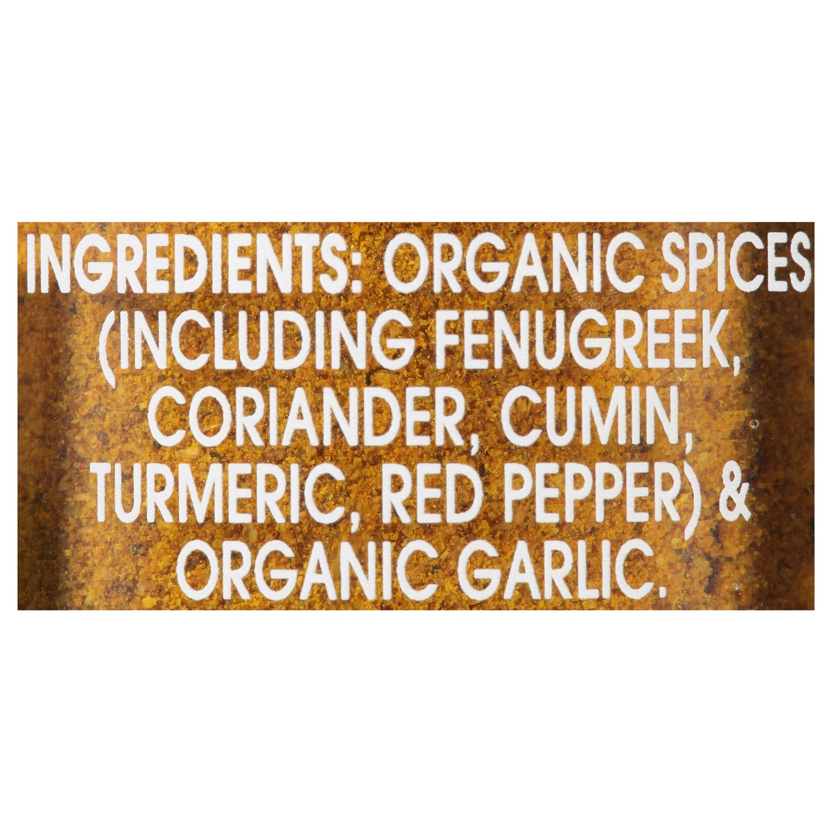 Organic Spices (Including Fenugreek, Coriander, Cumin, Turmeric, Red Pepper) & Organic Garlic.