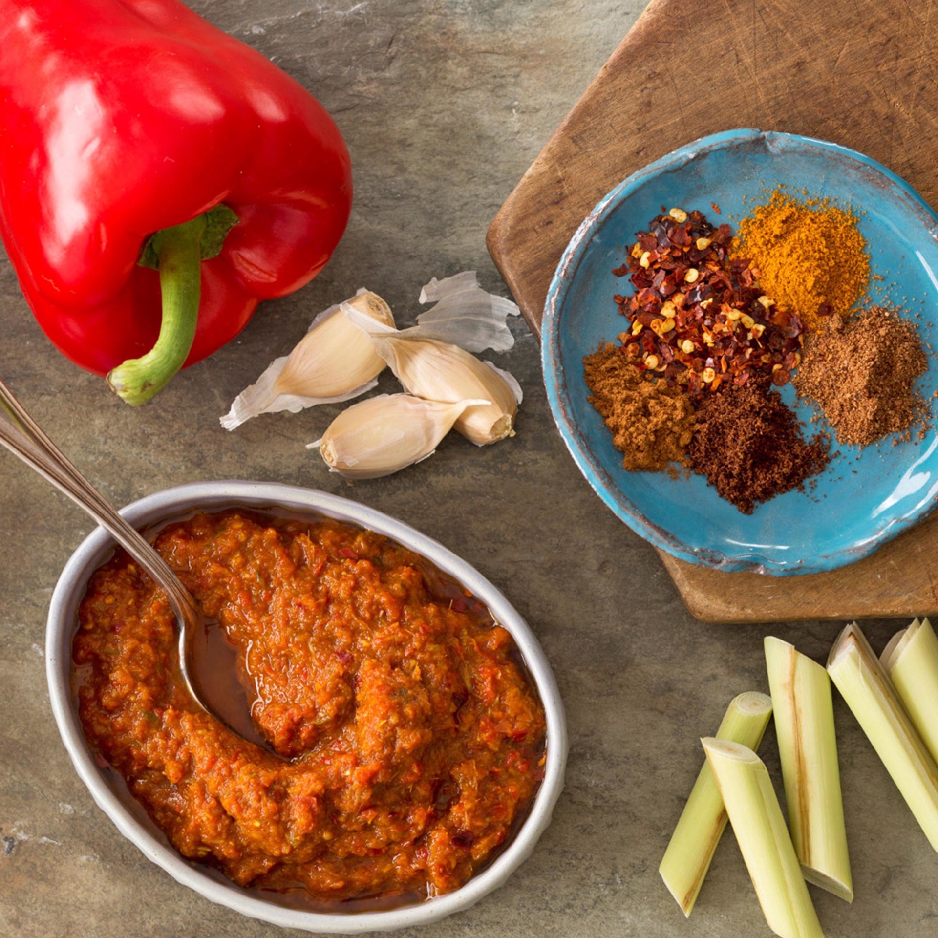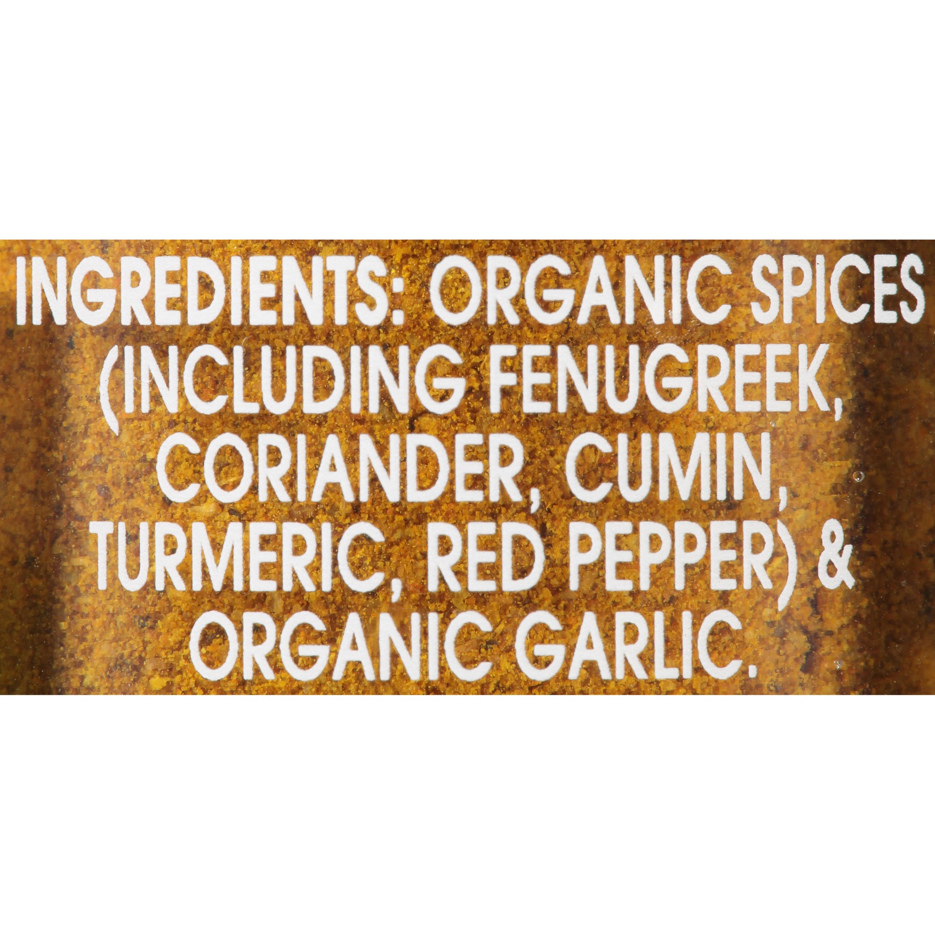 Organic Spices (Including Fenugreek, Coriander, Cumin, Turmeric, Red Pepper) & Organic Garlic.