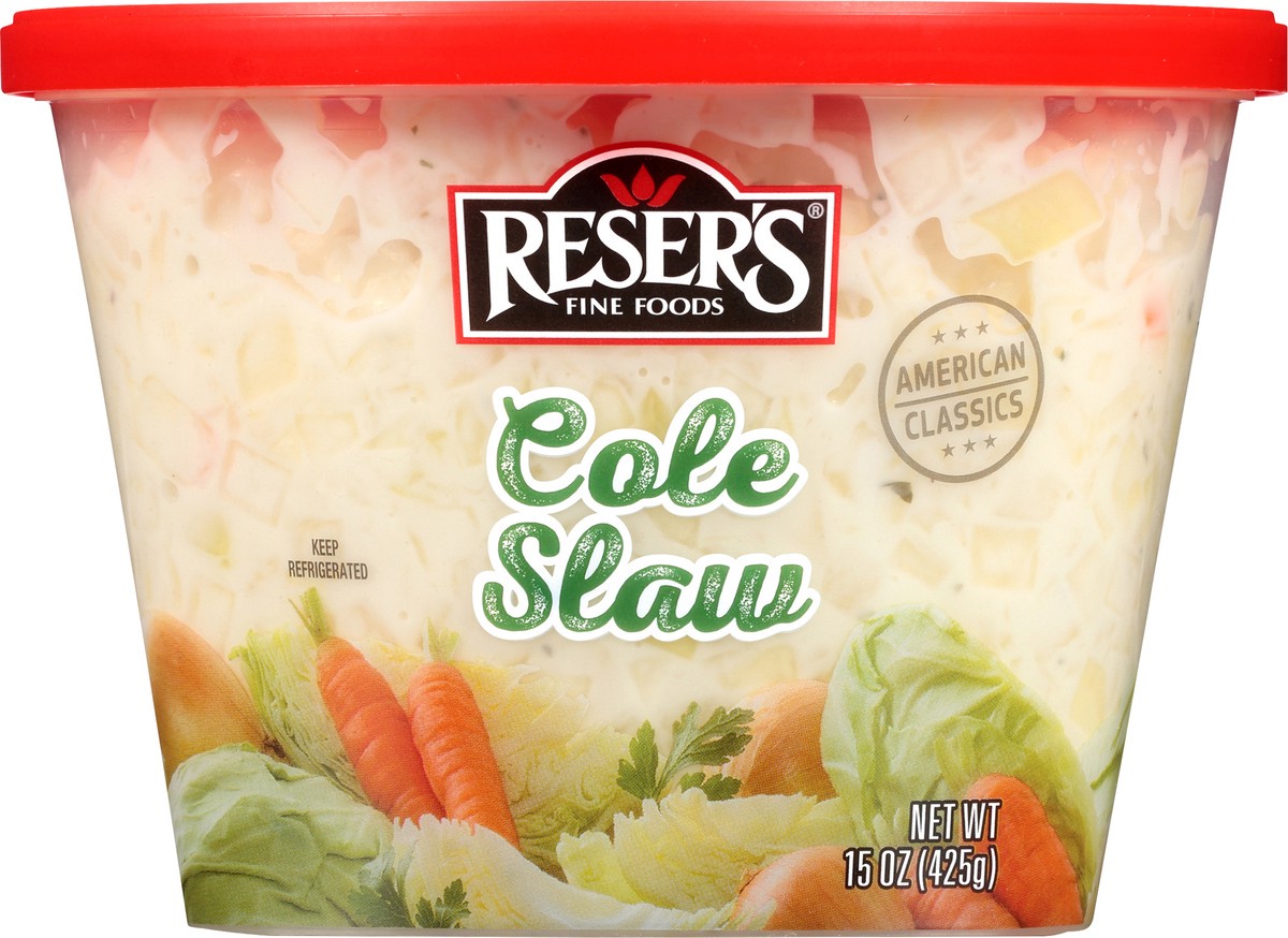 Barbecue''s favorite sidekick, Reser's Cole slaw features crisp cabbage, crunchy carrots, and a sweet and snappy mayonnaise dressing. Offered in a convenient, reusable container with high fructose cor…