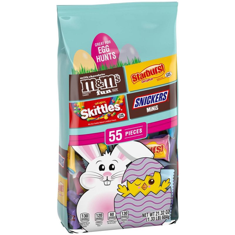 - Contains one (1) 21.32-ounce, 55 piece bag of assorted M&M's, SNICKERS, SKITTLES and STARBURST Chocolate & Chewy Easter Candy Variety Pack to enhance your Easter traditions