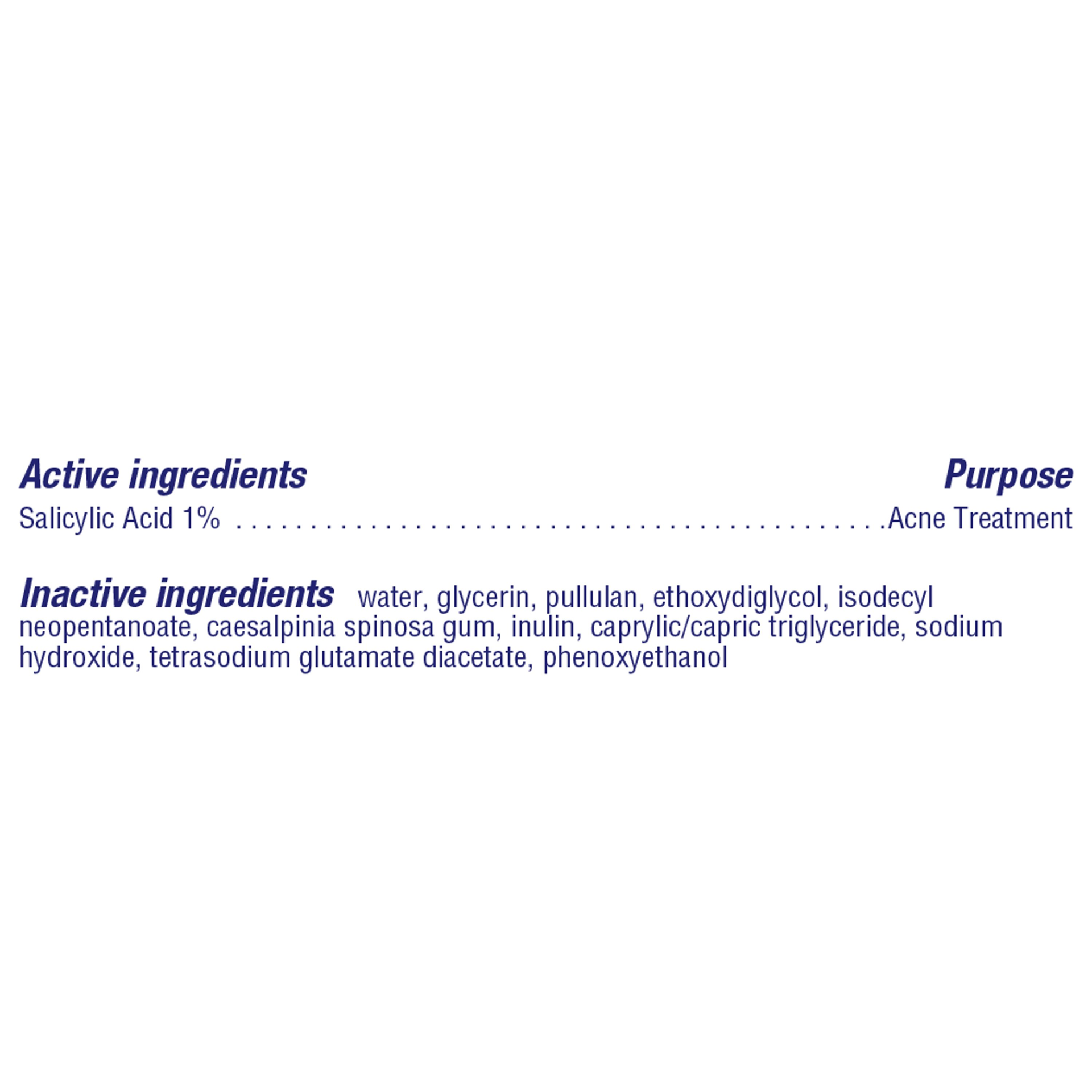 Active Ingredients: Salicylic Acid 1.00% Inactive Ingredients : Water, Glycerin, Pullulan, Ethoxydiglycol, Isodecyl Neopentanoate, Caesalpinia Spinosa Gum, Inulin, Caprylic/Capric Triglyceride, Sodium…
