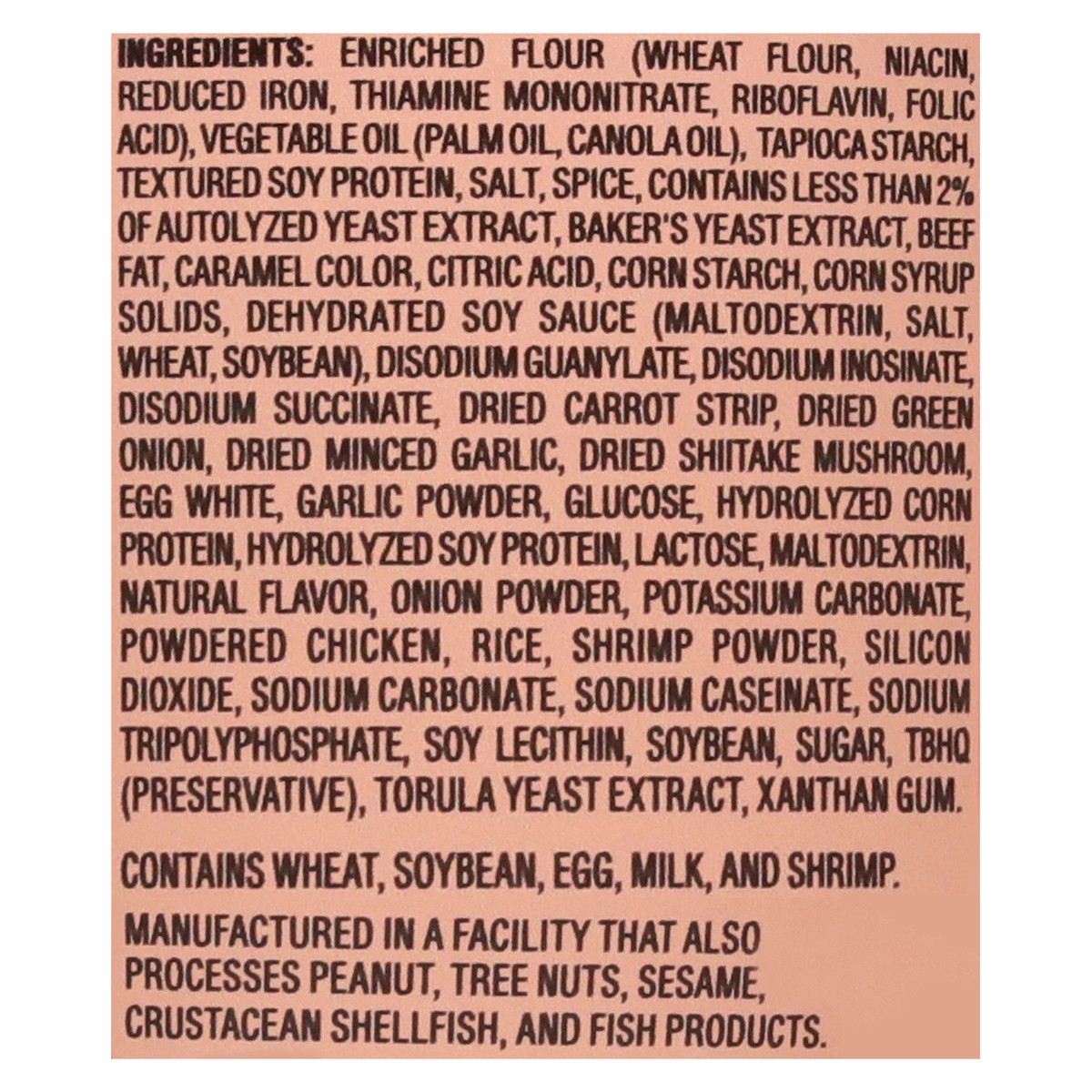 Contains wheat, soybean, egg, milk, and shrimp. manufactured in a facility that also processes peanut, tree nuts, sesame, crustacean shellfish, and fish products.