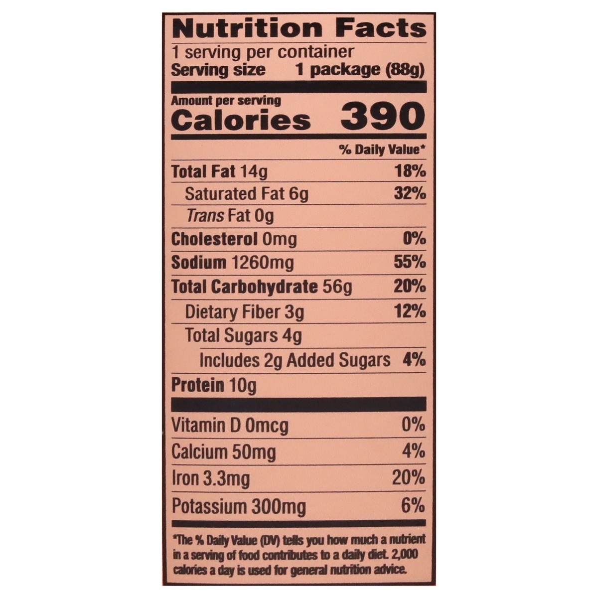 Enriched Flour (Wheat Flour, Niacin, Reduced Iron, Thiamine Mononitrate, Riboflavin, Folic Acid), Vegetable Oil (Palm Oil, Canola Oil), Tapioca Starch, Textured Soy Protein, Salt, Spice, Contains Less…