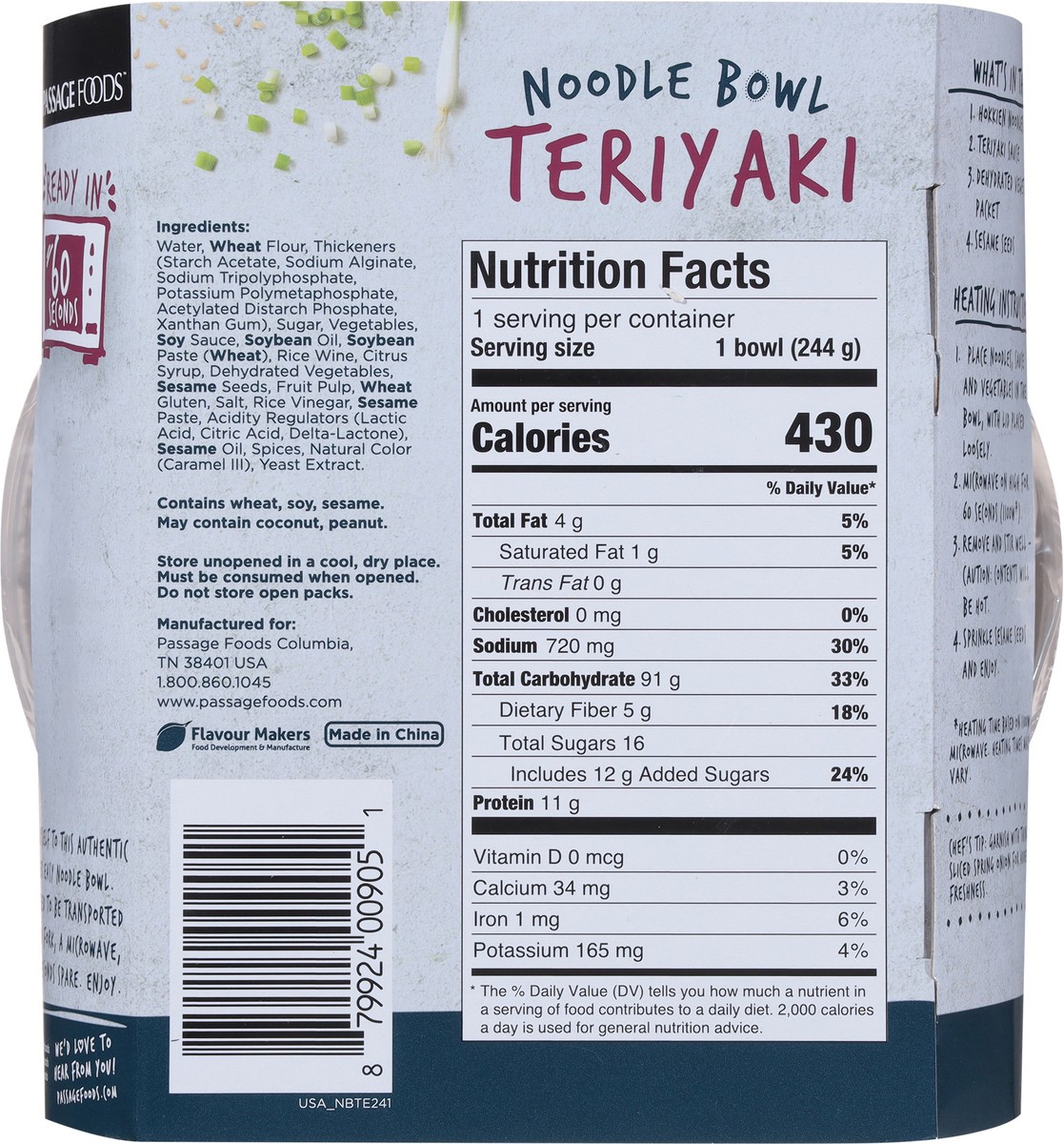 Passage Foods Noodle Bowl Teriyki Chkn