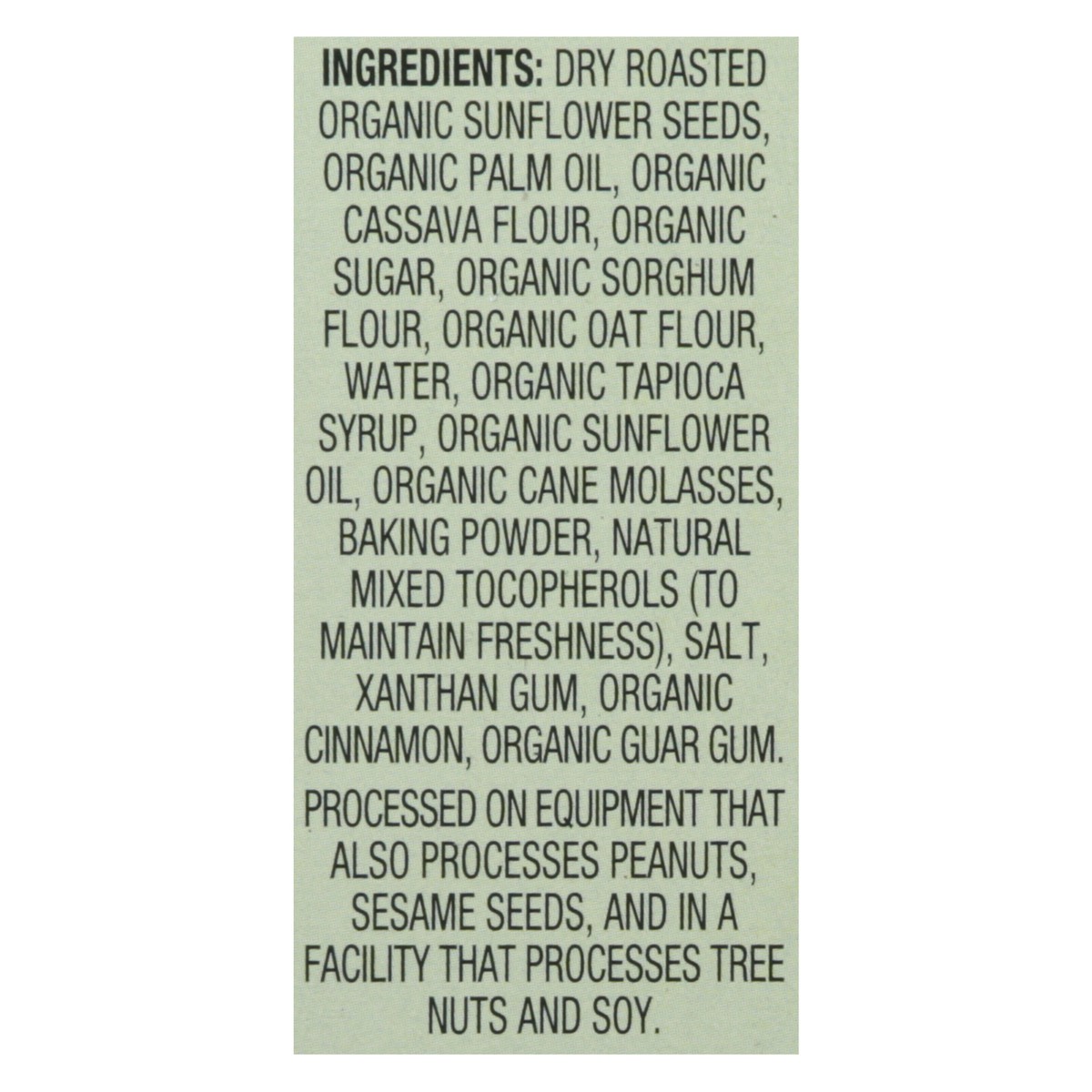 Dry Roasted Organic Sunflower Seeds, Organic Palm Oil, Organic Cassava Flour, Organic Sugar, Organic Sorghum Flour, Organic Oat Flour, Water, Organic Tapioca Syrup, Organic Sunflower Oil, Organic Cane…