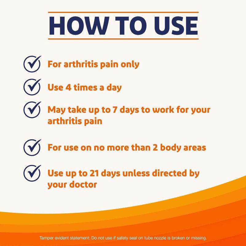 - One 1.7 oz/50 g tube of Voltaren Topical Arthritis Pain Gel#1 DOCTOR RECOMMENDED topical pain relief brandCLINICALLY PROVEN to relieve arthritis pain, improve mobility and reduce stiffnessAN ALTERNATIVE TO PILLS, Voltaren is a nonsteroidal anti-inflammatory gelDICLOFENAC SODIUM TOPICAL GEL PENETRATES DEEP to attack arthritis pain at the sourceHSA and FSA eligible item. Medicare Advantage OTC (MAOTC) eligible. *OTC benefits and eligible products vary by plan. Check your plan for specific details.
