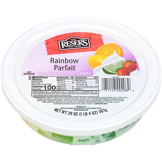 Reser's Rainbow Parfait is a tasty and colorful parfait dessert that blends gelatin with a rich whipped topping. The ring mold container allows you to flip it over and place it on a plate for a decora…