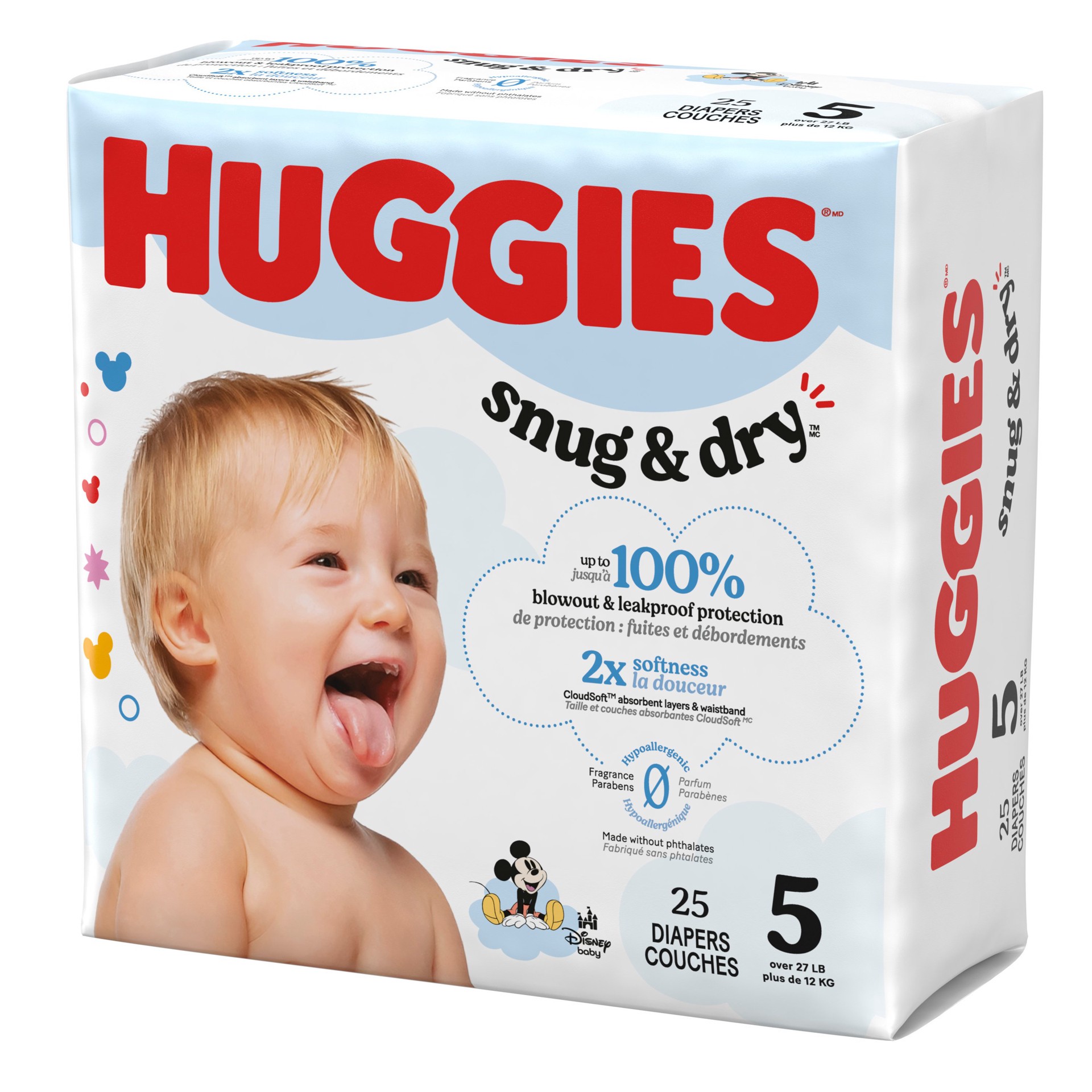 Huggies Snug & Dry Baby Diapers, Size 5 (27+ lbs), 25 Ct