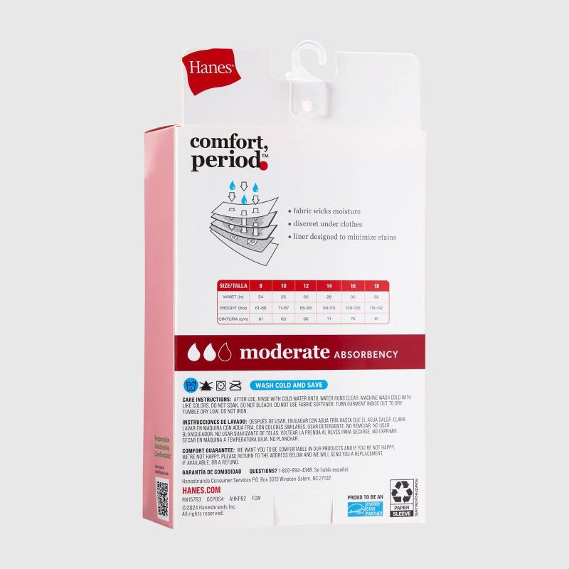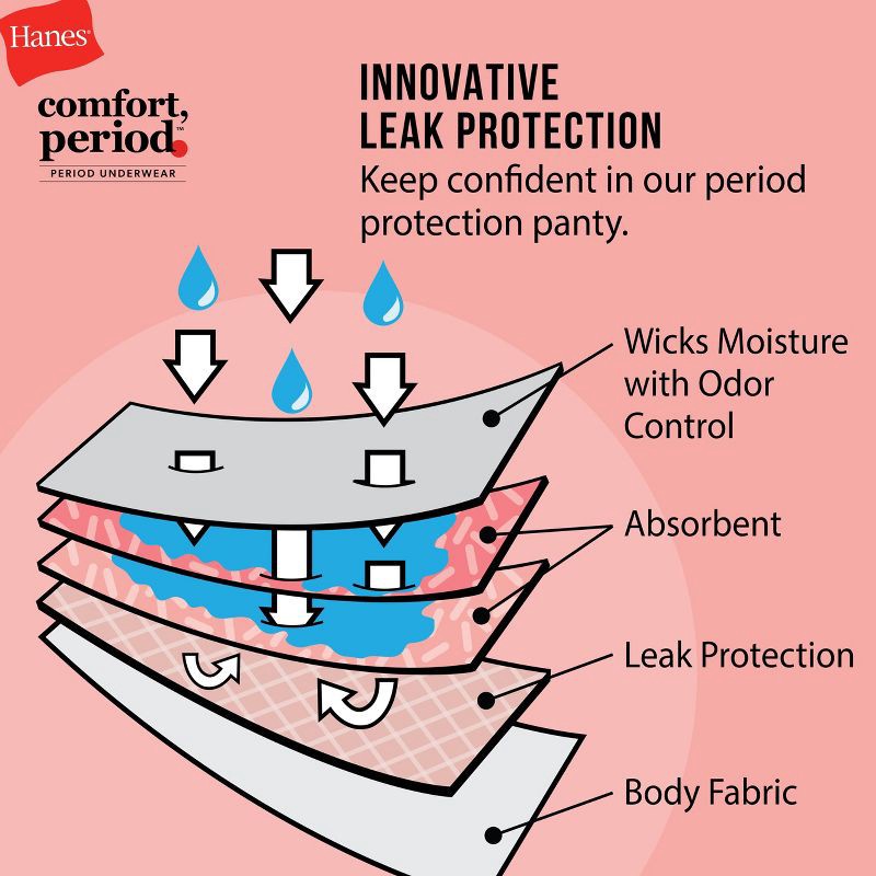 CONFIDENCE. ALL DAY, EVERY DAY. Hanes Comfort, Period.™ girls' period boyshort underwear is designed to provide her with peace of mind and total comfort. A built-in leak protection liner wicks away mo…