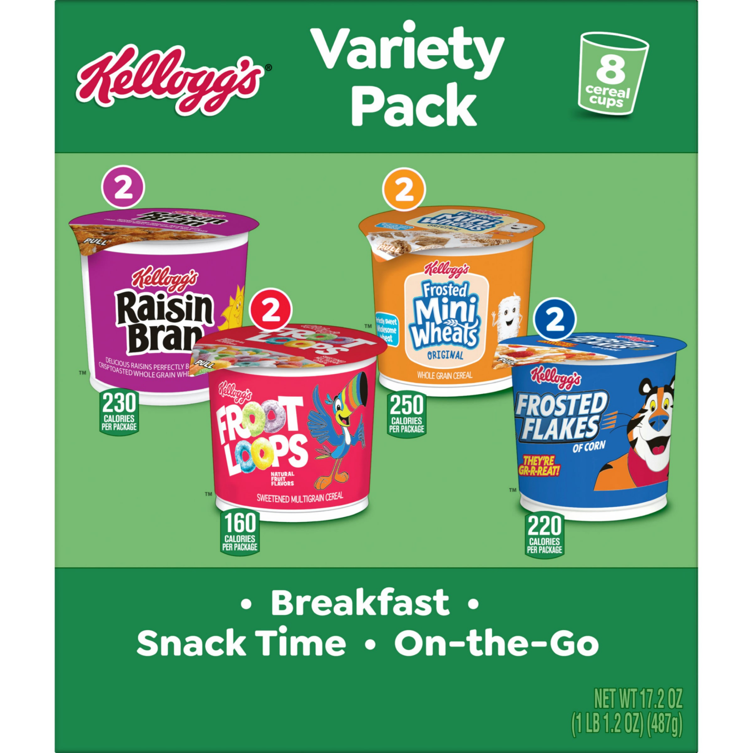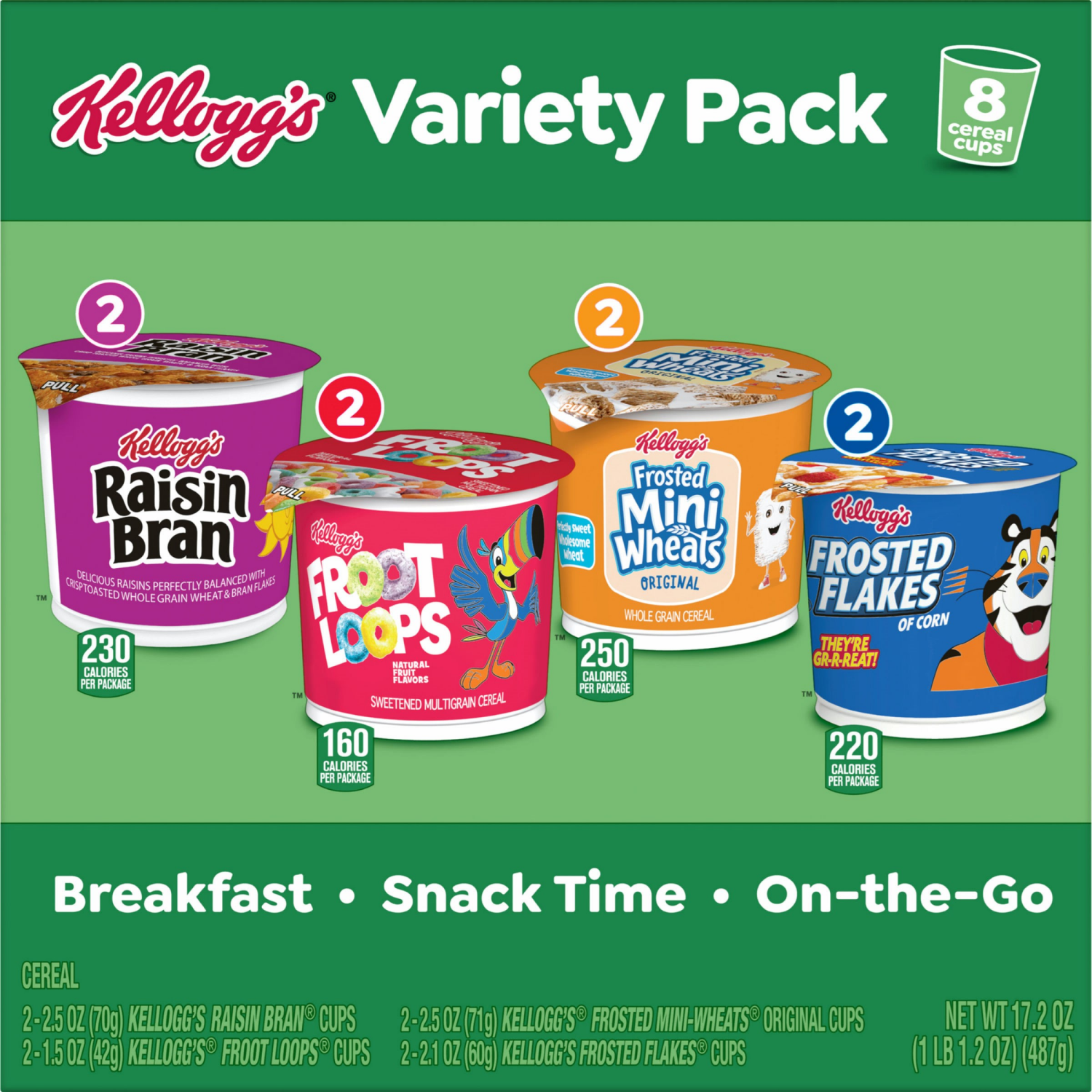 Kellogg's Frosted Flakes, Raisin Bran, Froot Loops, Frosted Mini-Wheats Breakfast Cereal Variety Pack, 8 Count