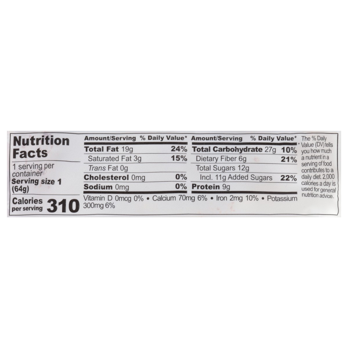 Almond Butter, Agave, Gluten-Free Rolled Oats, Sunflower Seeds, Flax Seeds, Pumpkin Seeds, Almonds, Dark Chocolate (Cane Sugar, Chocolate Liquor, Cocoa Butter, Vanilla Powder), Coconut.