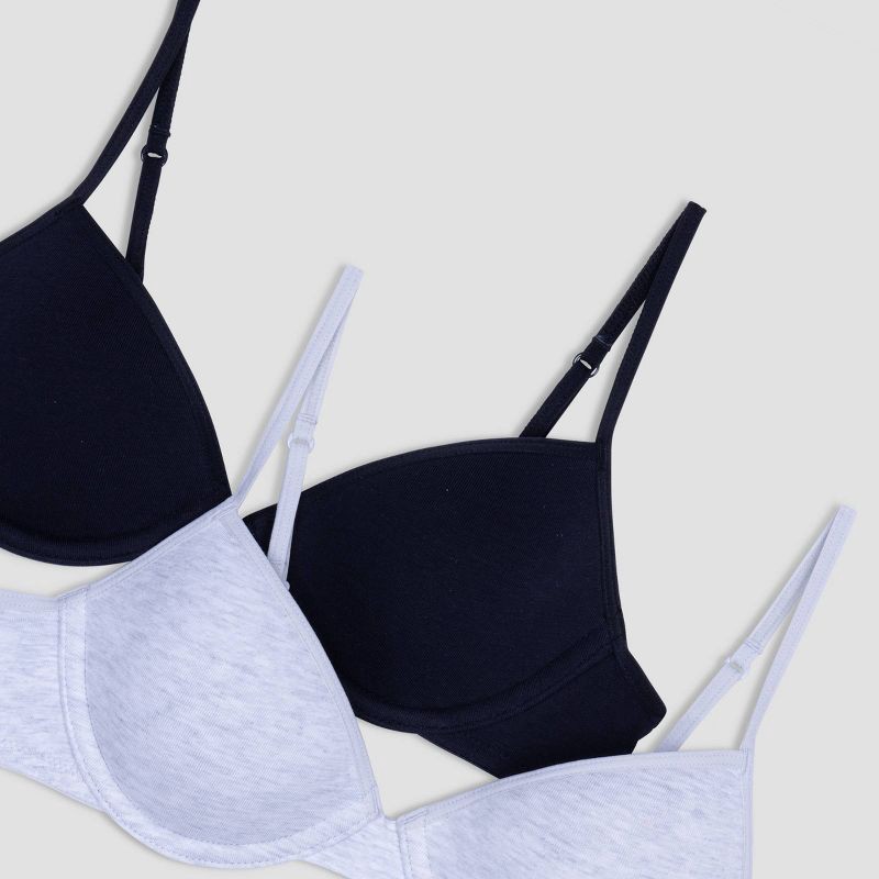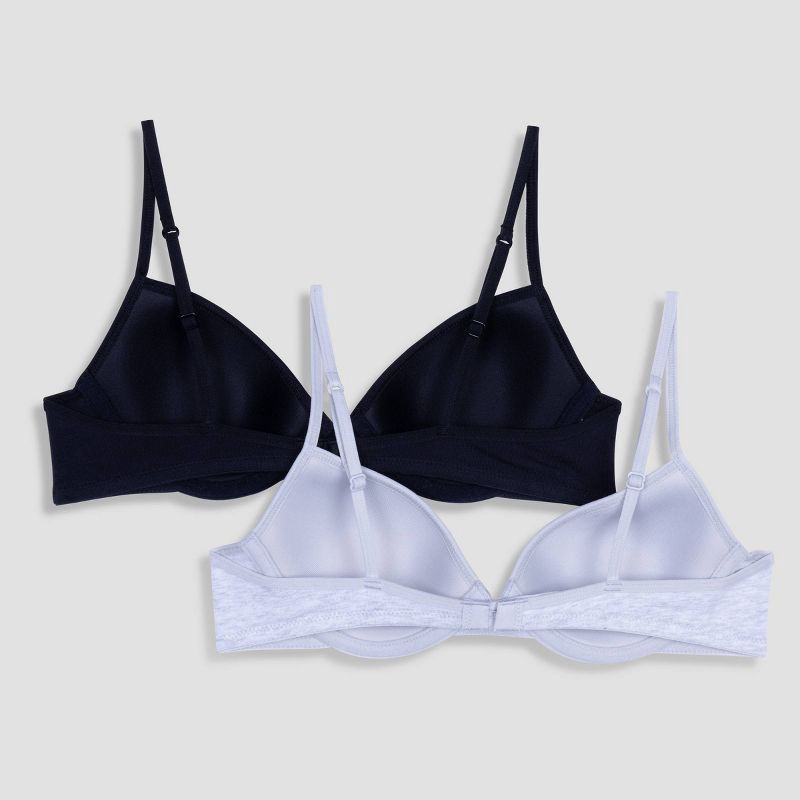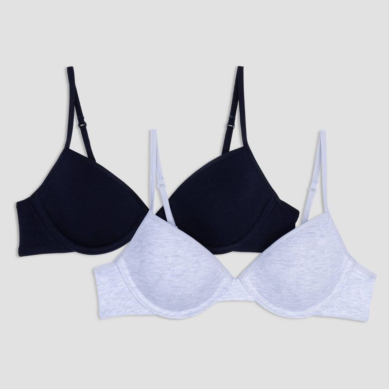 Hanes Girls' 2pk Cotton Molded T-Shirt Bra - Gray/Black 38A