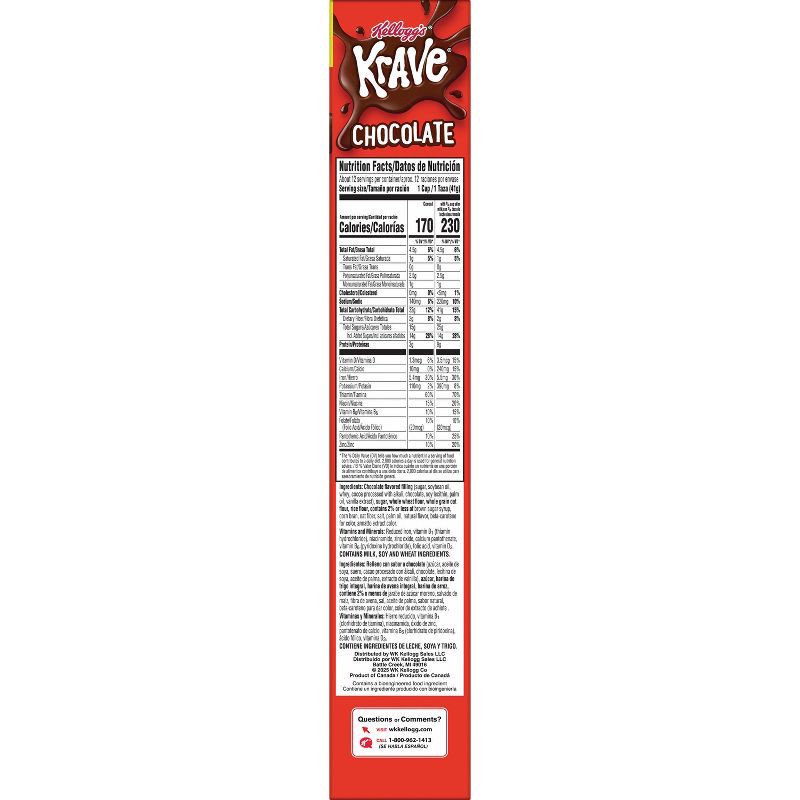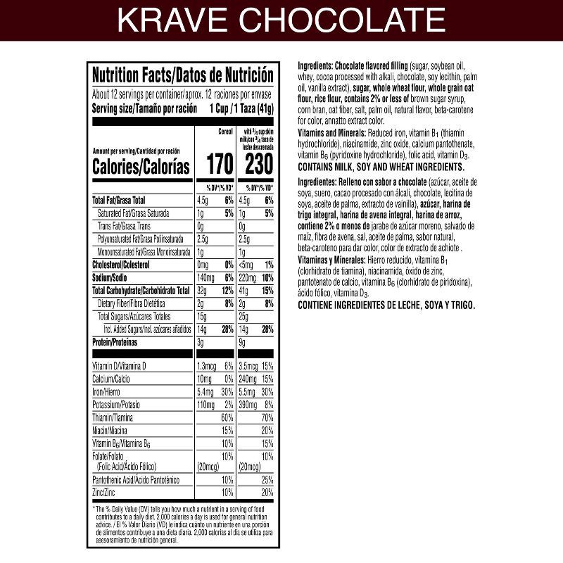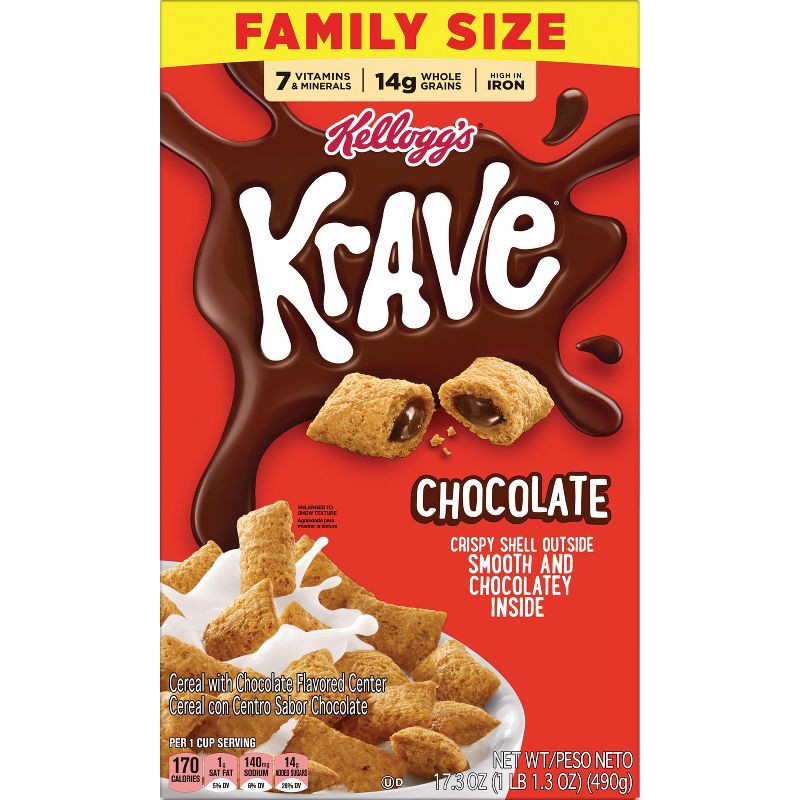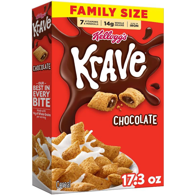 - WHAT YOU GET: Includes one 17.3 oz family size box of Kellogg's Krave Chocolate cereal; Shelf stable; Instant and ready to eat