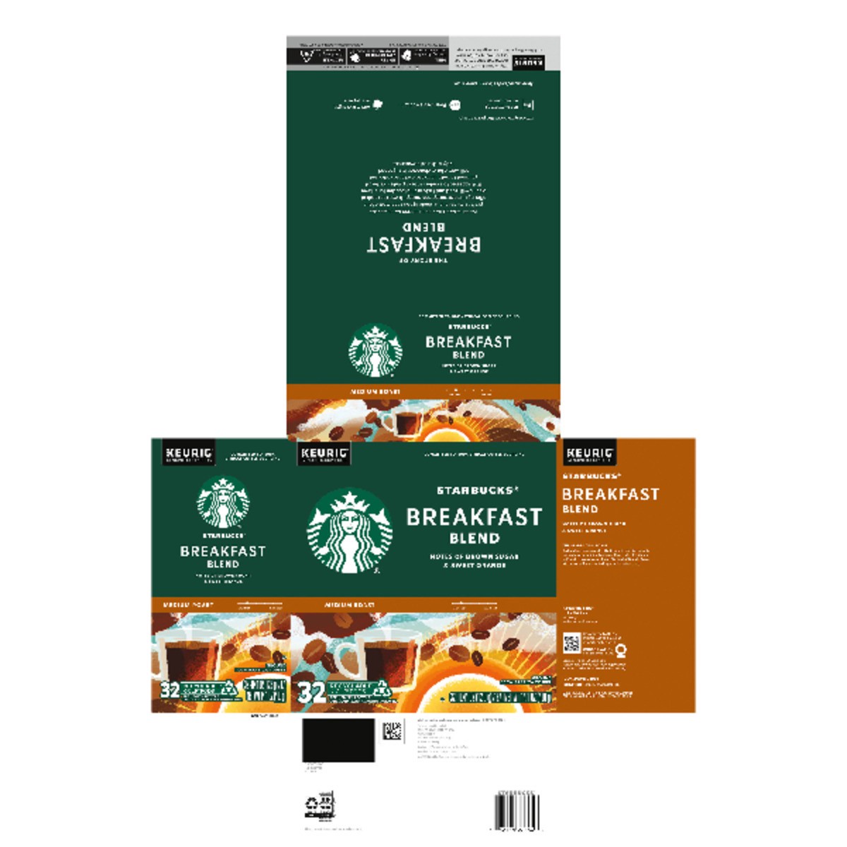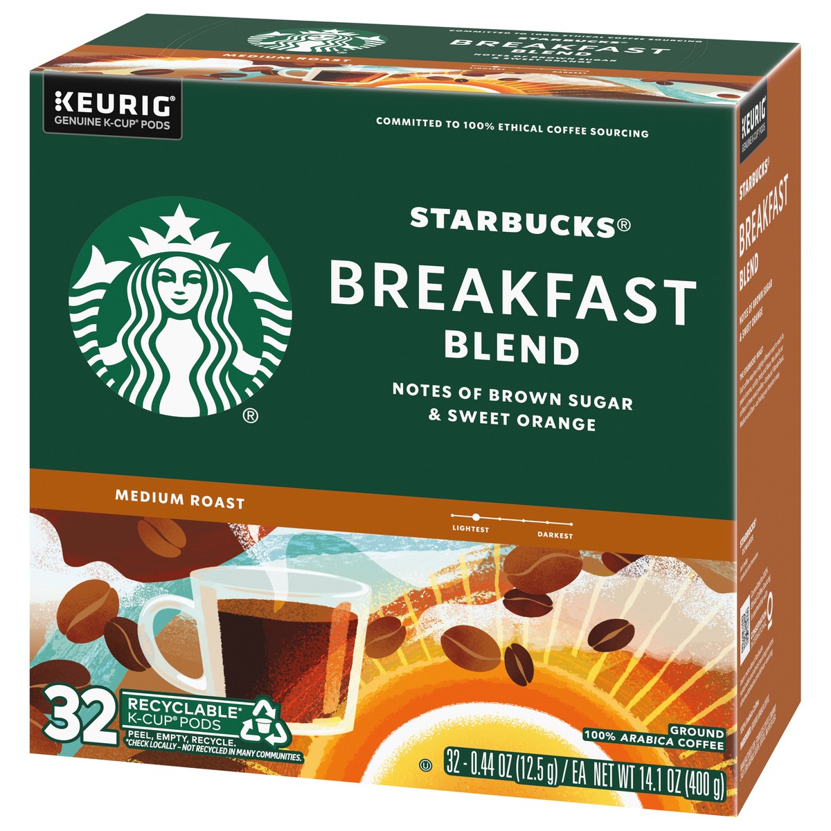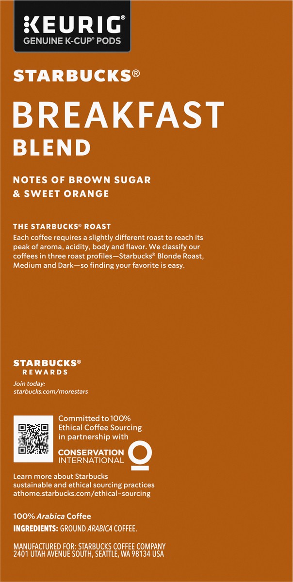 Starbucks Breakfast Blend 100% Arabica Medium Roast K Cup Coffee Pods Box 32 Count - Each