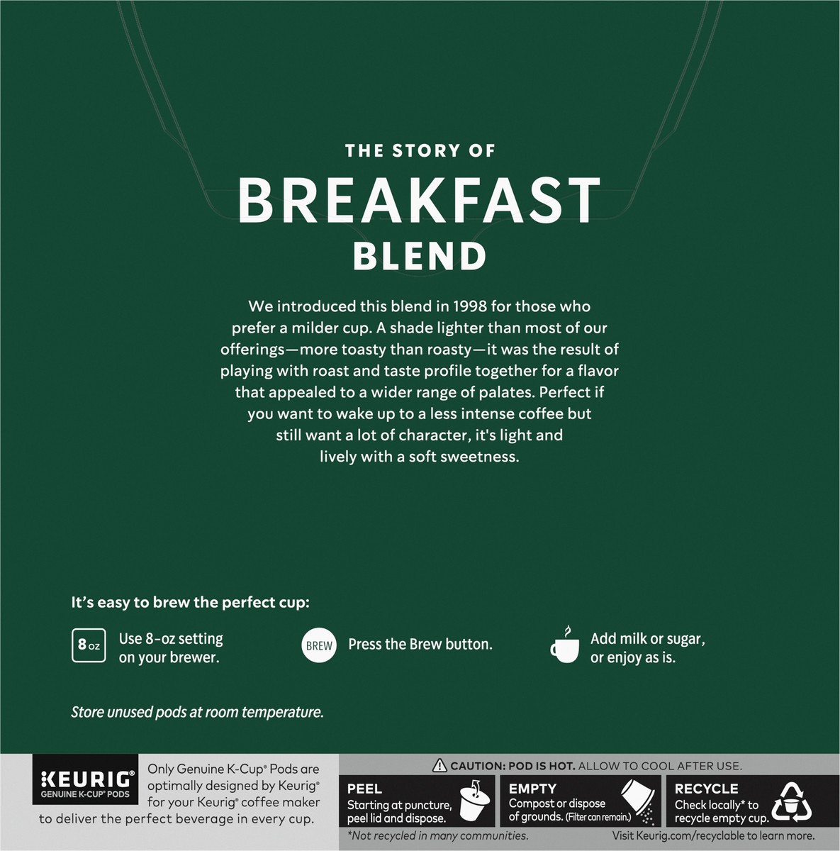 We introduced this blend in 1998 for those who prefer a milder cup. A shade lighter than most of our offerings—more toasty than roasty—it was the result of playing with roast and taste profile togethe…