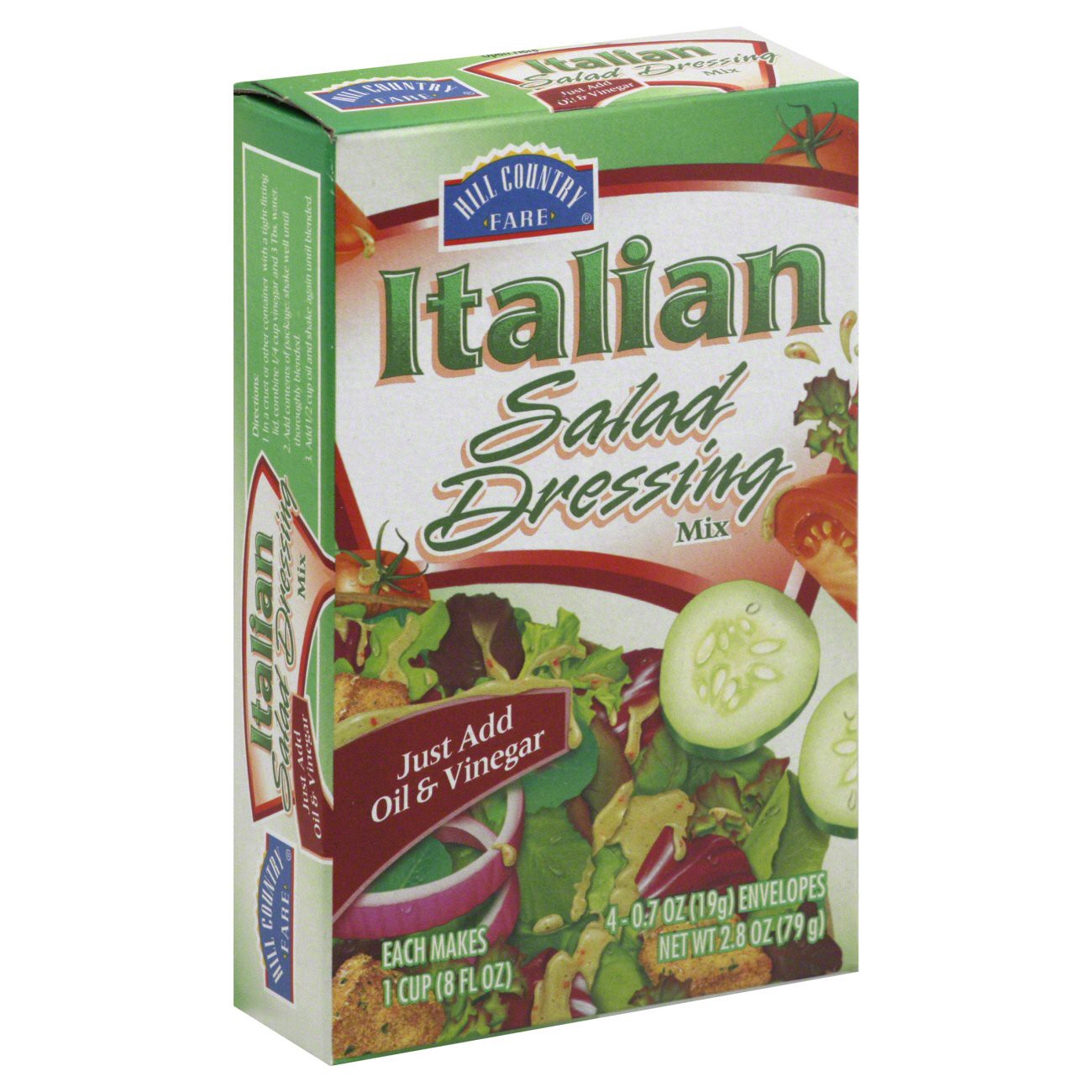 Easy to tuck into your pantry for whenever you need it, this box of Hill Country Fare Italian salad dressing mix includes 4 packets. Each one makes one 8-oz cup of zesty-flavored dressing, and all tha…