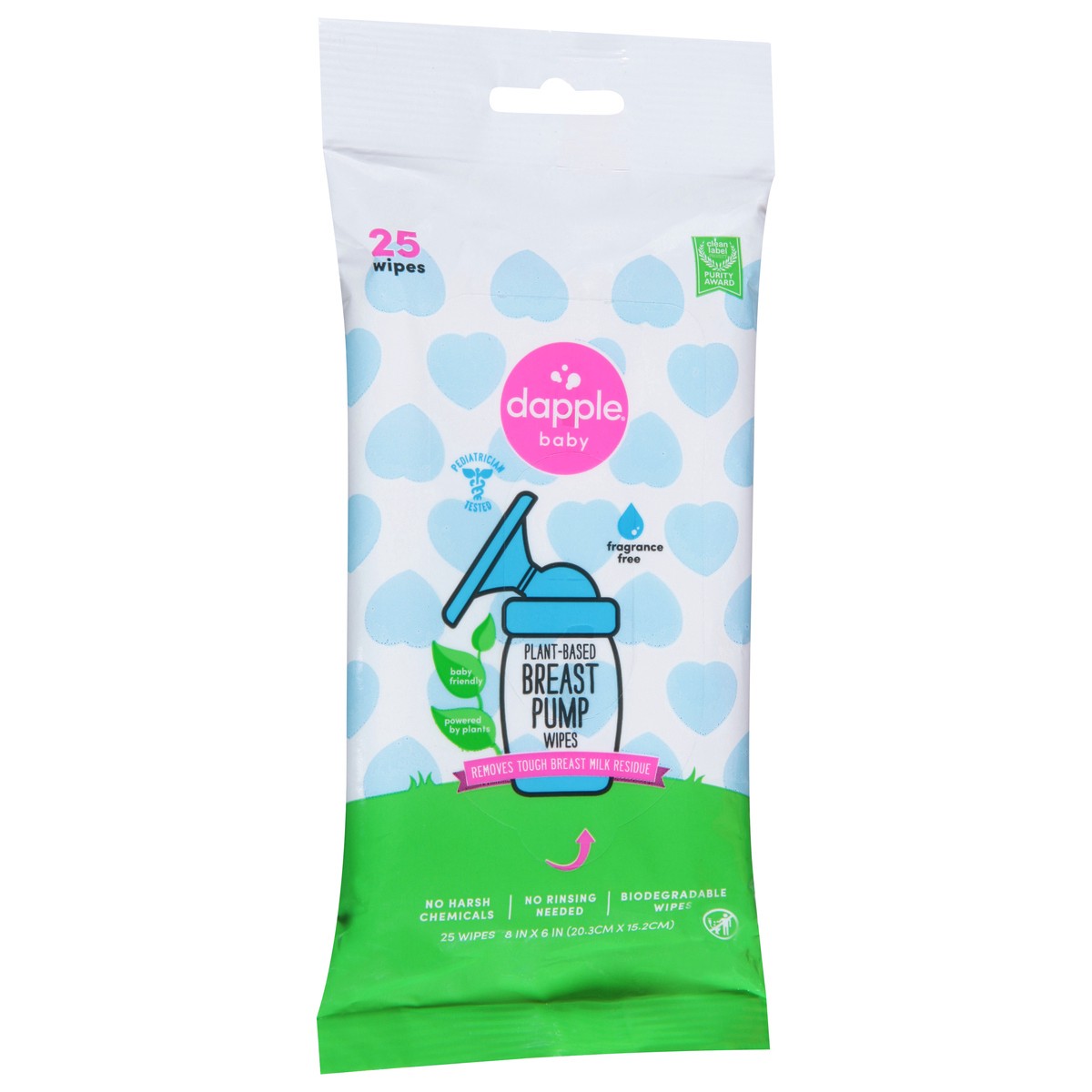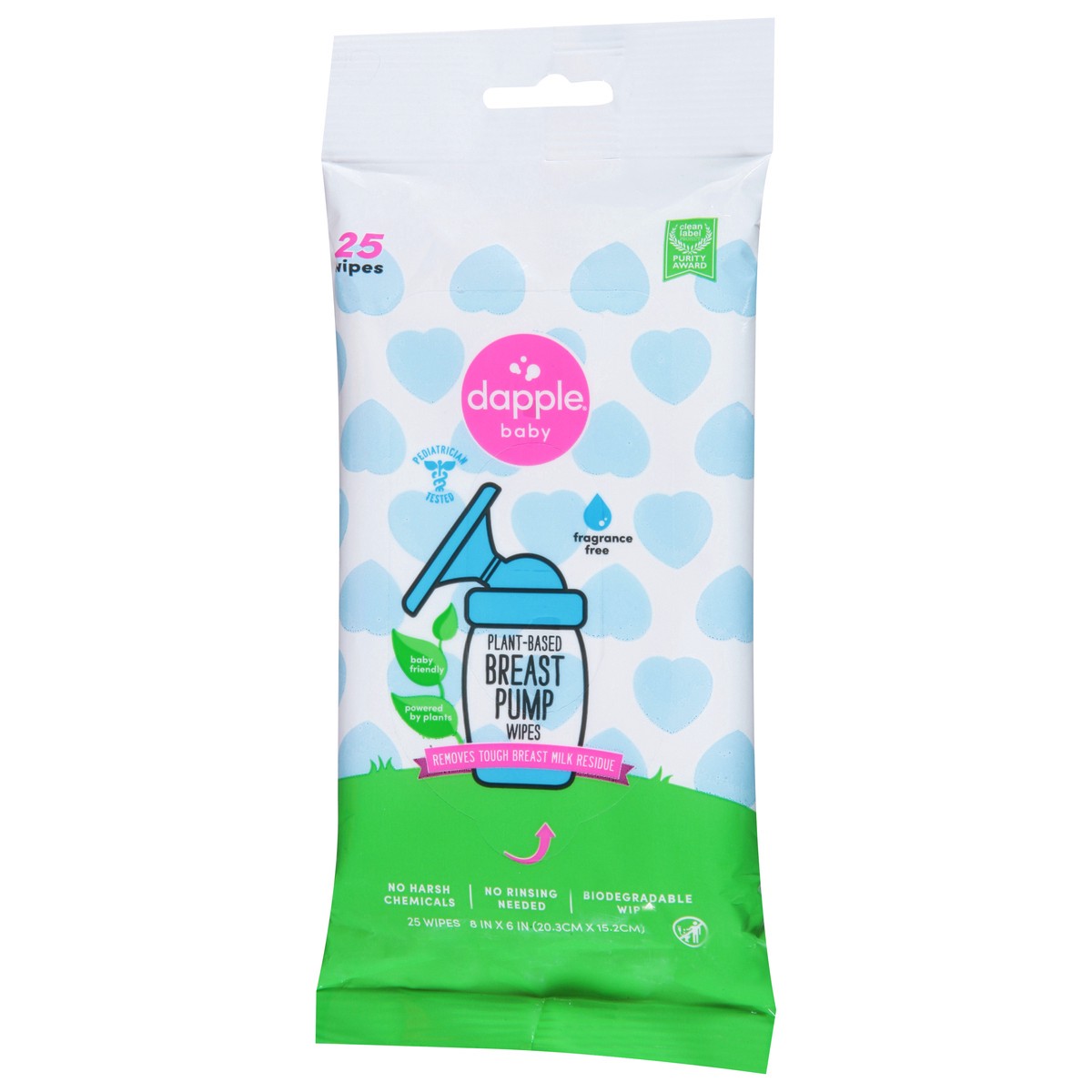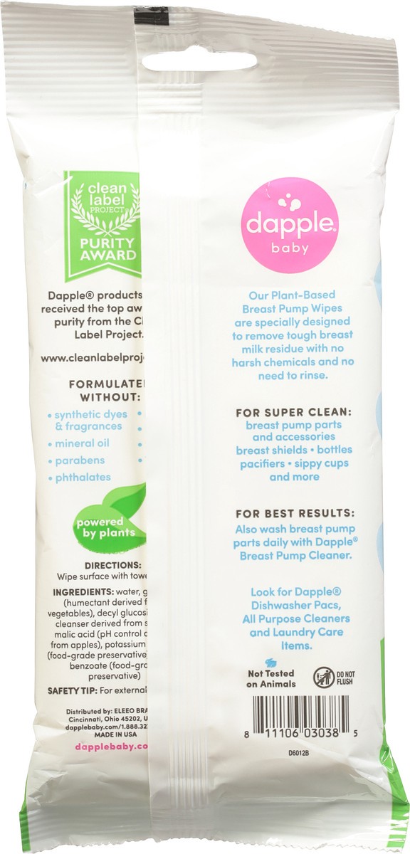 Pediatrician tested. Fragrances free. Baby friendly. Powered by plants. Removes tough breast milk residue. No harsh chemicals. No rinsing needed. Biodegradable wipes. Formulated Without: Synthetic dye…