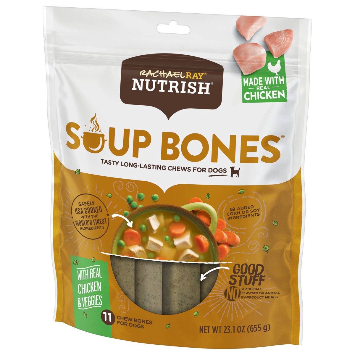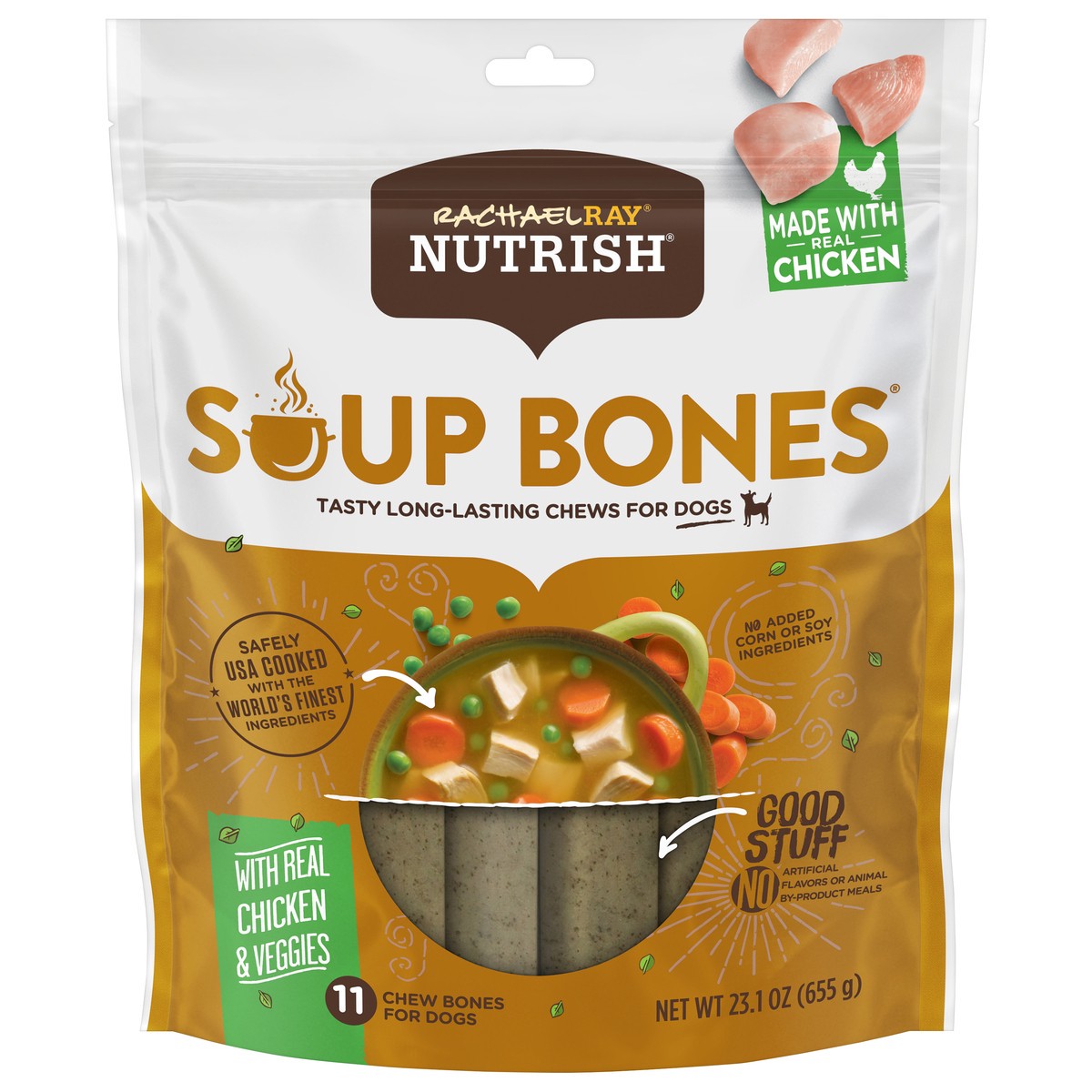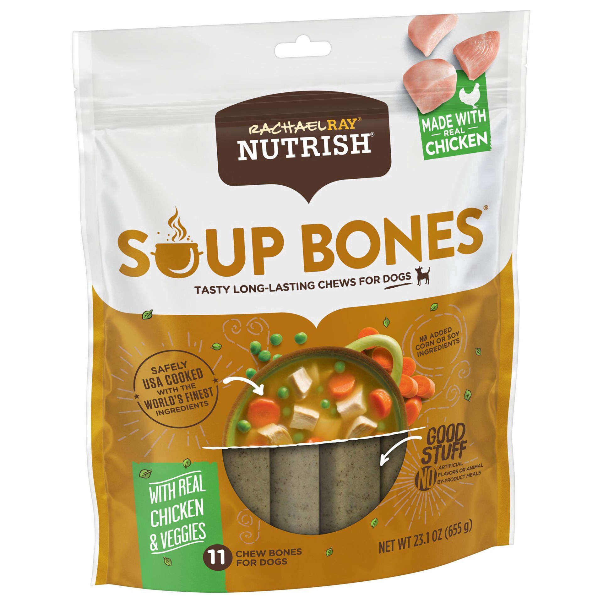 Mmmm. A delicious, hearty chicken soup bone. Any dog would want to get their paws on one. And now they can, with Rachael Ray Nutrish Soup Bones dog chews. These long-lasting chews for dogs are made wi…