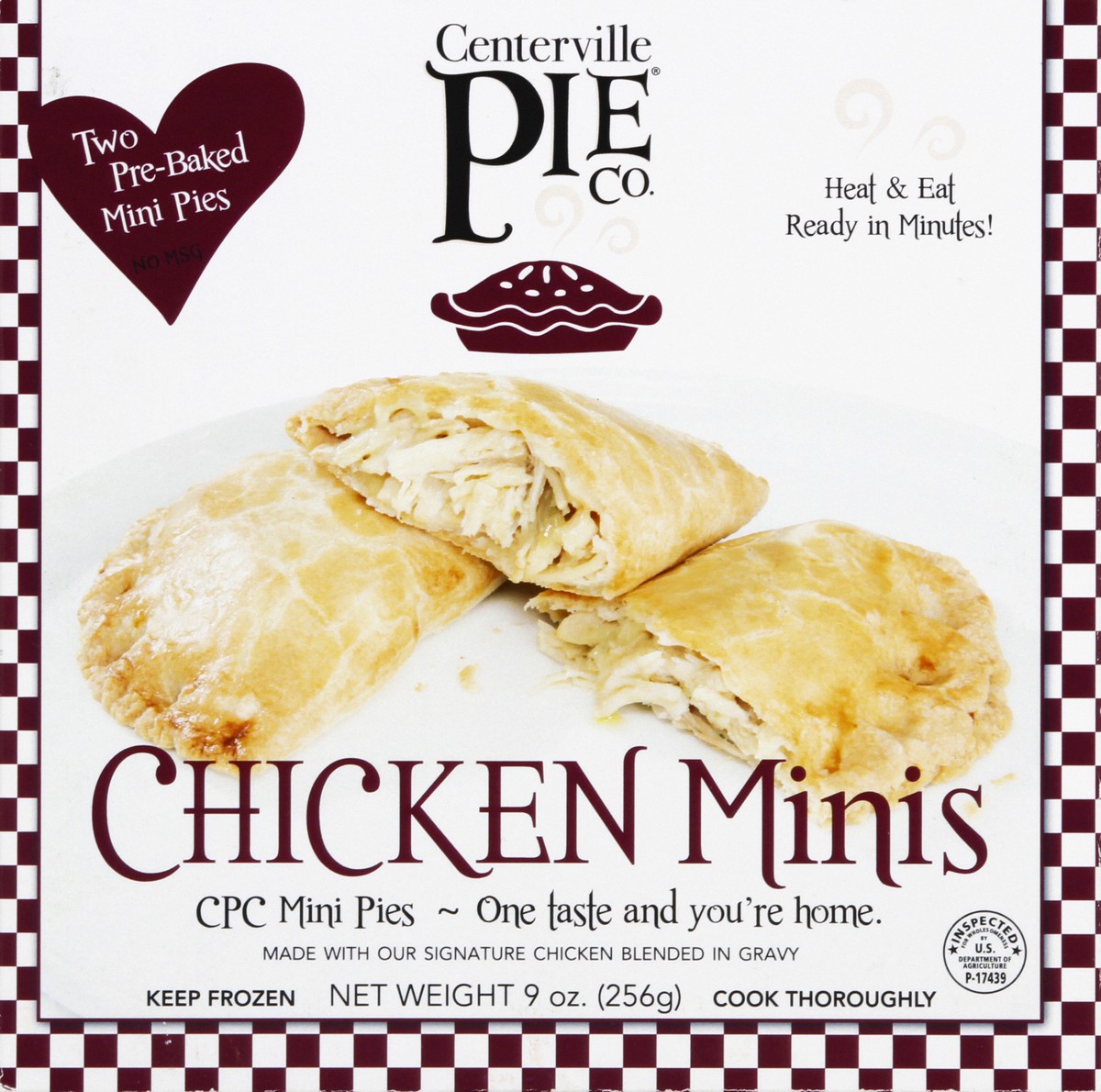 Two pre-baked mini pies. Heat & eat. Ready in minutes! CPC Mini Pies - one taste and you're home. Made with our signature chicken blended in gravy. Your love our signature chicken pie so much - we now…