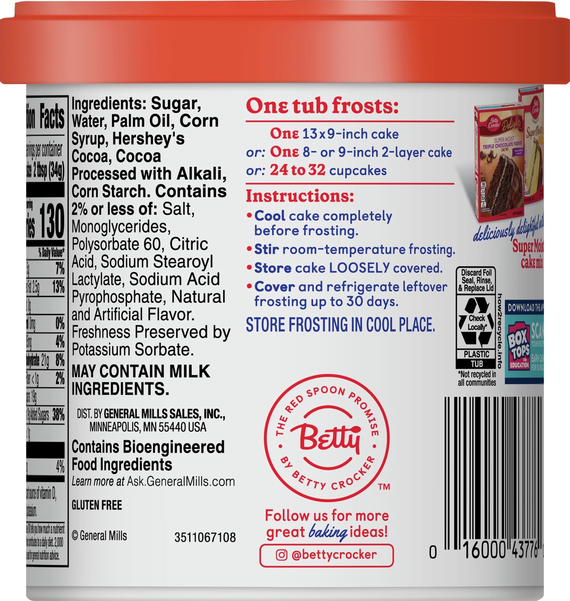 How will you enjoy the rich, decadent flavor of our creamy and delicious frosting? Betty Crocker Gluten Free Hershey's Milk Chocolate Frosting perfectly tops all your cakes, cupcakes and cookies for t…