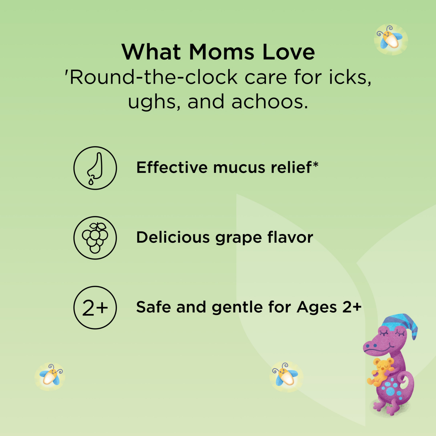 A unique multisymptom formulation focused on mucusclearing efficacy, while soothing coughs, congestion, and runny nose.
