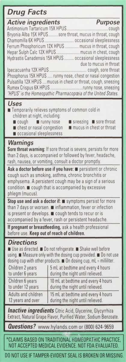 Hyland's Naturals Kids Nighttime Natural Grape Flavor Cough & Mucus 4 fl oz