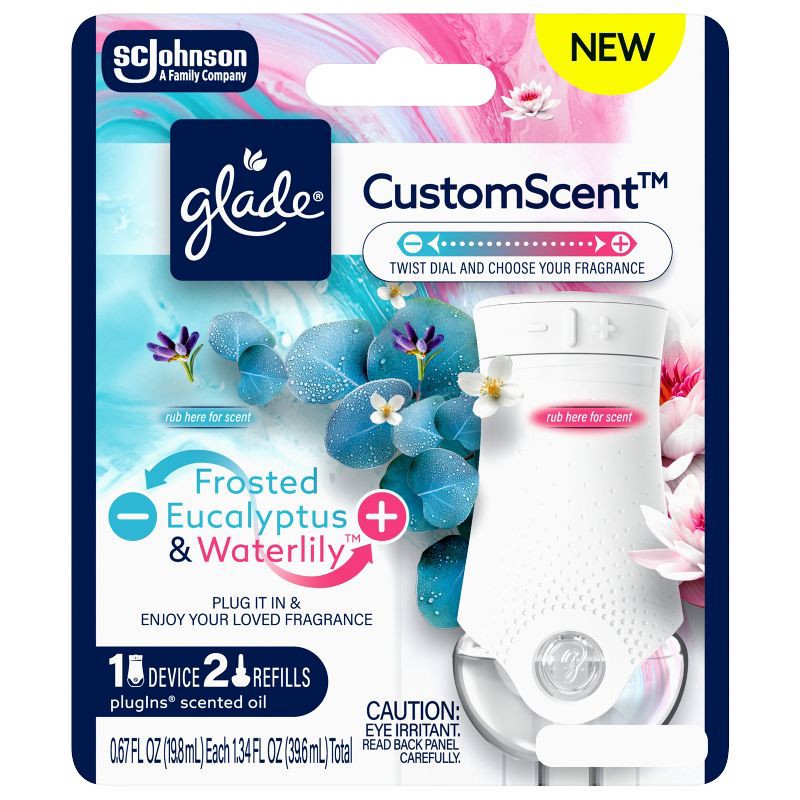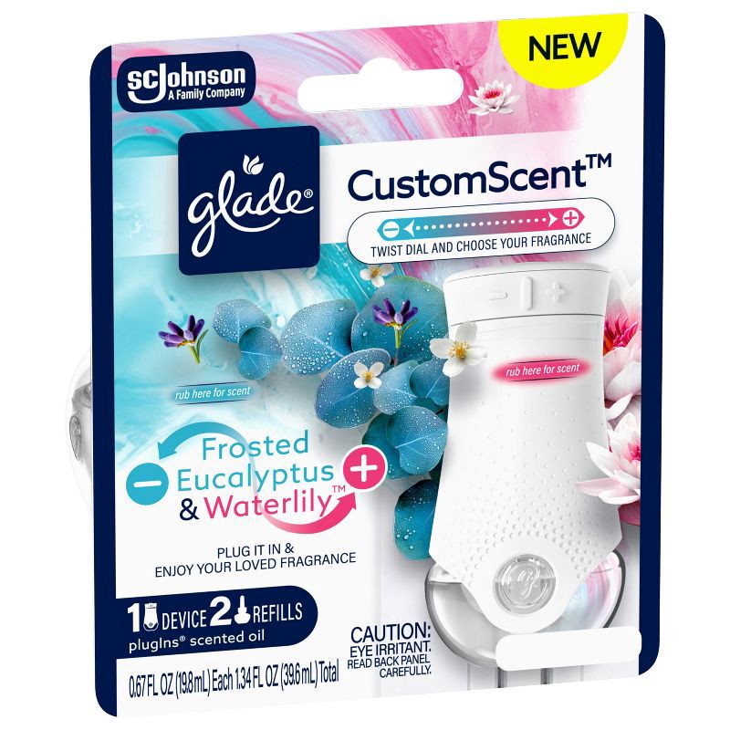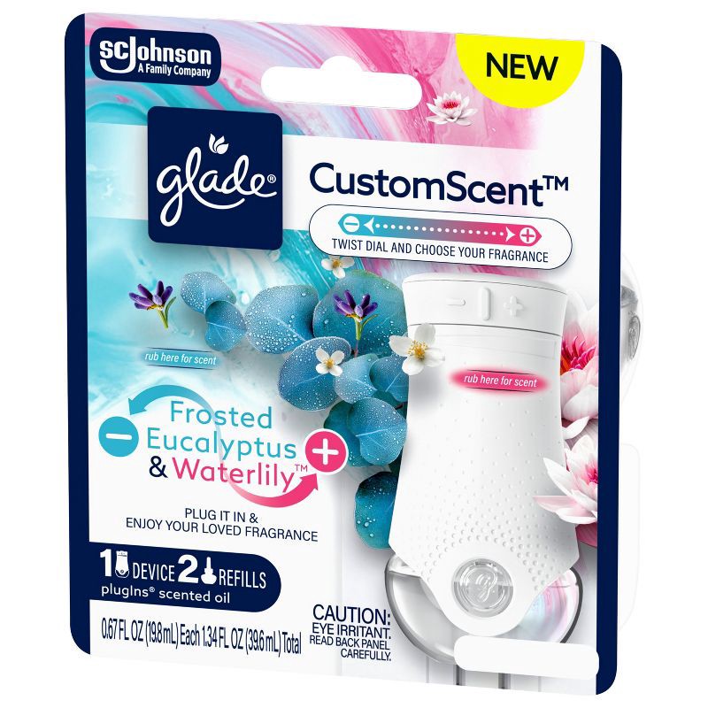 - Includes 1 Glade® MaxControl device and 2 Eucalyptus & Waterlily™ PlugIns® Refills with CustomScent™ technology.
