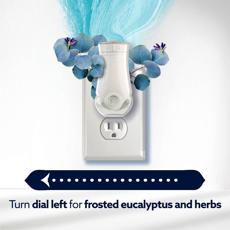 - Adjust the dial on your Glade® PlugIns® device to choose your perfect blend of fresh, cool Frosted Eucalyptus and floral, serene Waterlily.