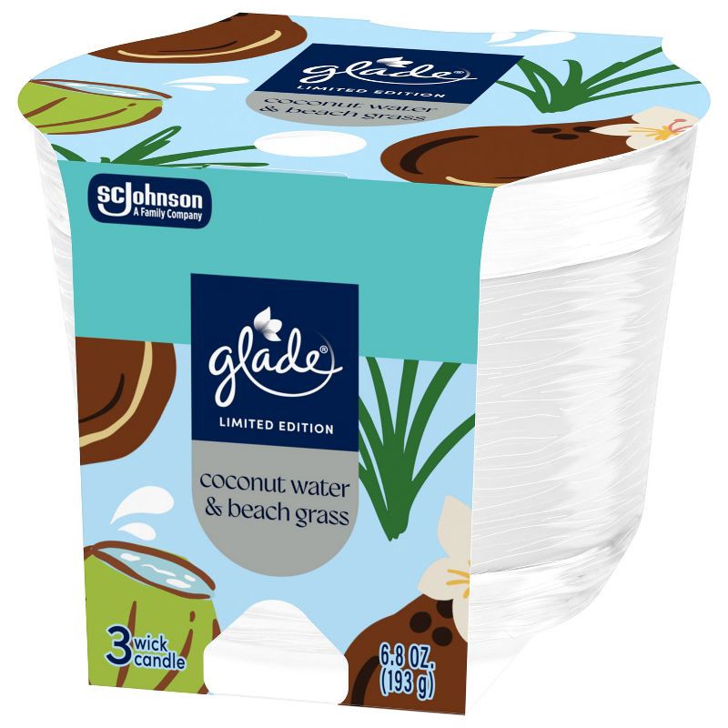 - Includes one Glade® Coconut Water & Beach Grass 3-Wick Candle infused with bright, revitalizing springtime scents