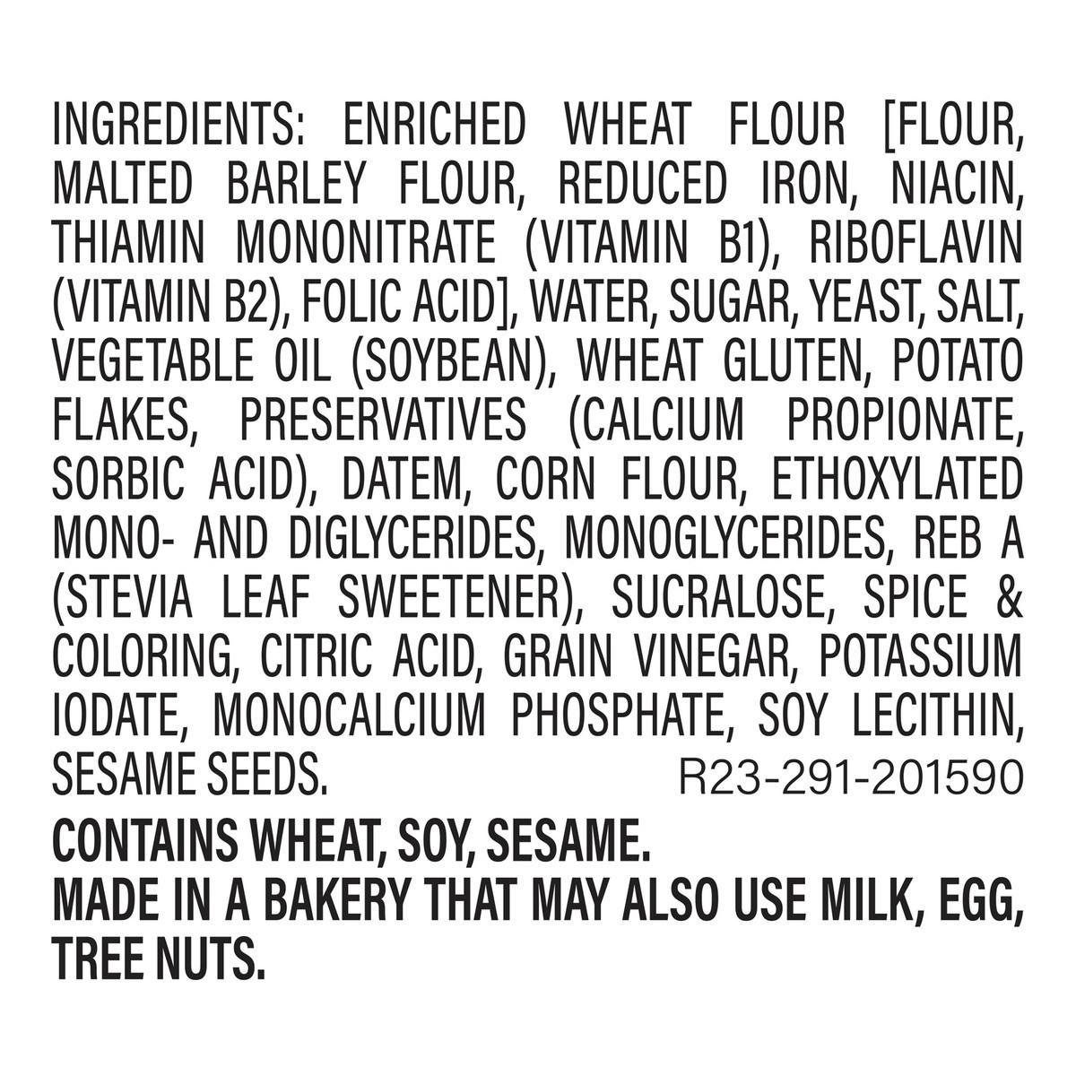 Enriched Wheat Flour [Flour, Malted Barley Flour, Reduced Iron, Niacin, Thiamin Mononitrate (Vitamin B1), Riboflavin (Vitamin B2), Folic Acid], Water, Sugar, Yeast, Salt, Vegetable Oil (Soybean), Whea…