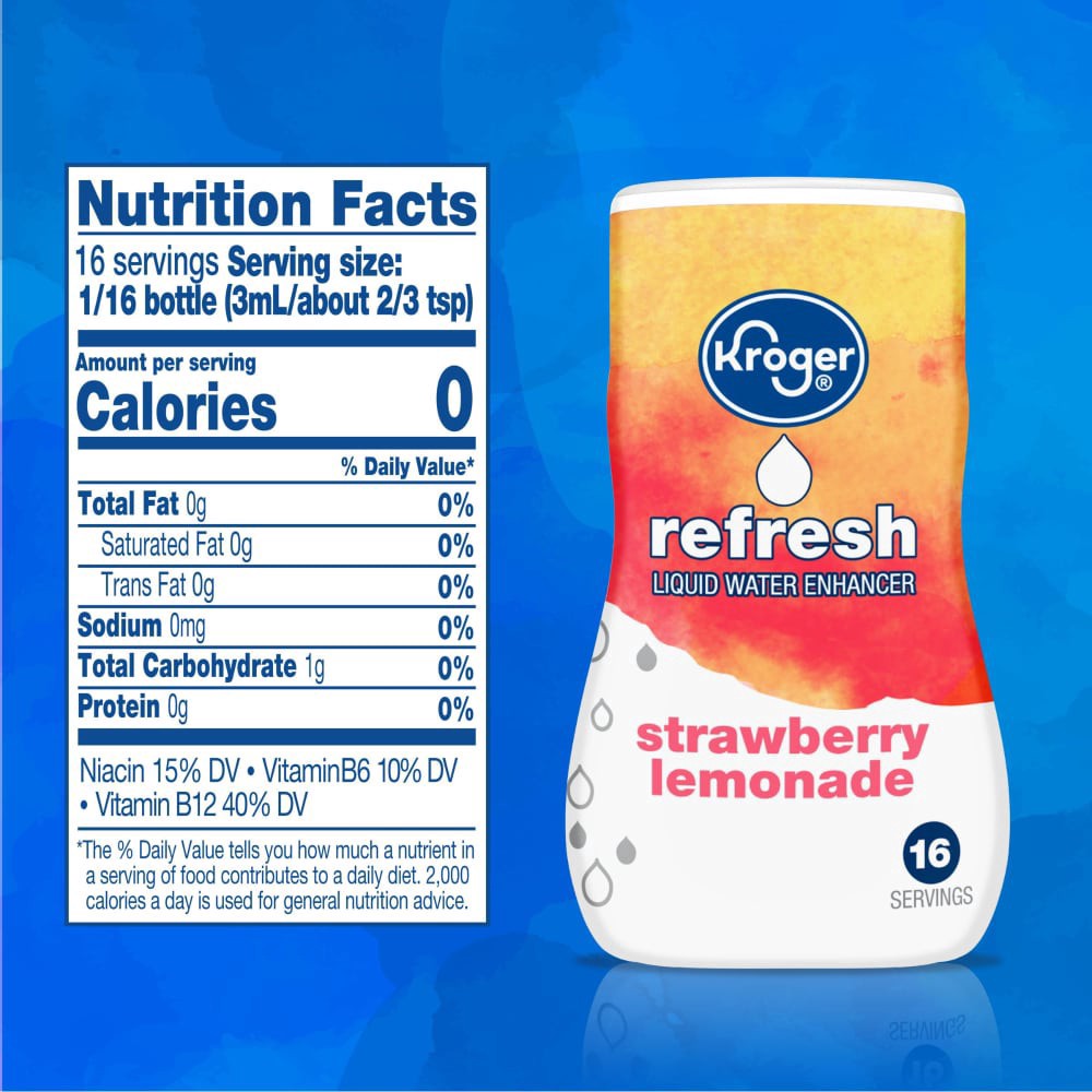 Kroger® Refresh Strawberry Lemonade Water Enhancer Bottle is the burst of fun your day needs. Add one squeeze to your water and enjoy the strawberry lemonade flavors in every sip. One squirt per 8 fl …
