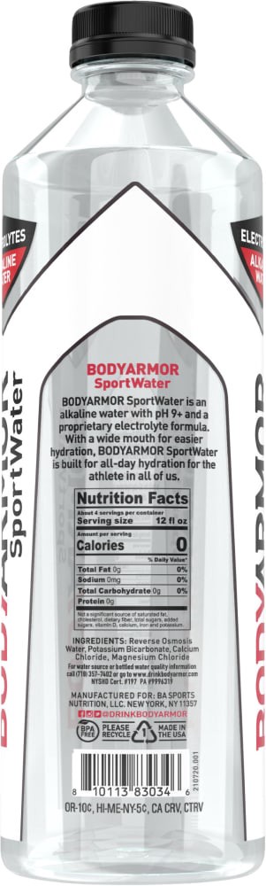 - With a wide-mouth bottle to ensure easy hydrationThis bottled alkaline water has a pH 9+ and electrolytes for a taste as good as victoryMade with reverse-osmosis water for crisp and refreshing hydration with every gulp1.5-liter bottle of BODYARMOR SportWater