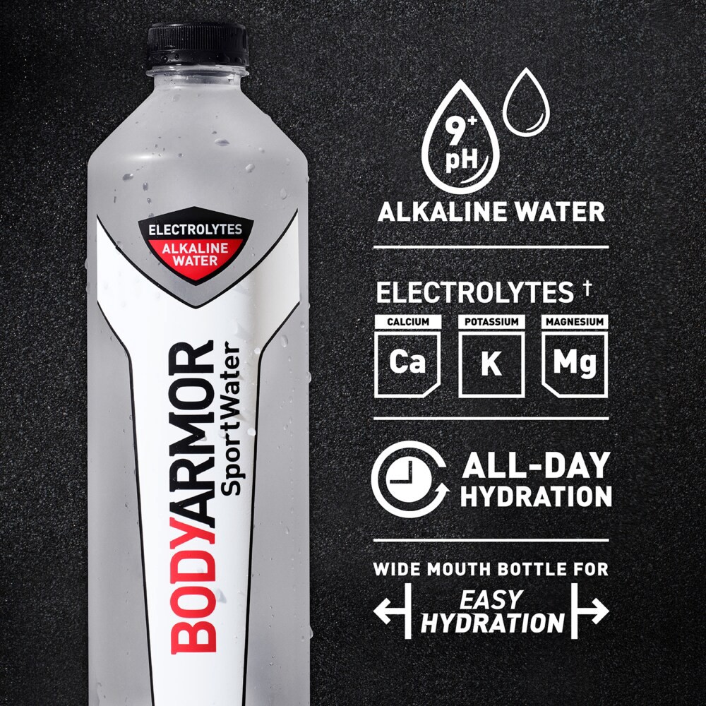 - With a wide-mouth bottle to ensure easy hydrationThis bottled alkaline water has a pH 9+ and electrolytes for a taste as good as victoryMade with reverse-osmosis water for crisp and refreshing hydration with every gulp1.5-liter bottle of BODYARMOR SportWater