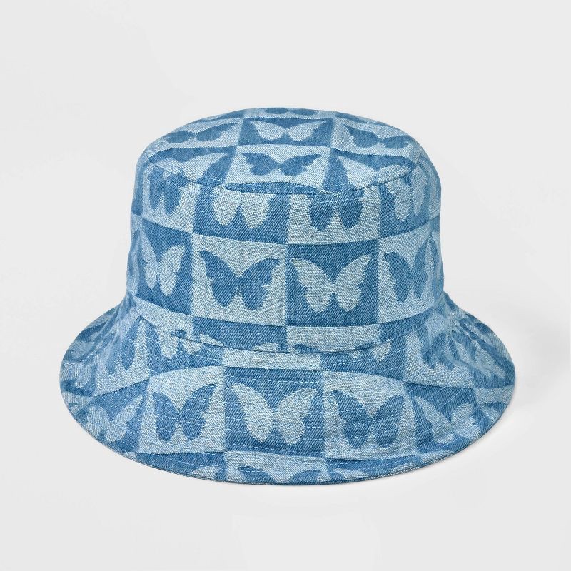 Girls' Denim Butterfly Bucket Hat - art class Blue