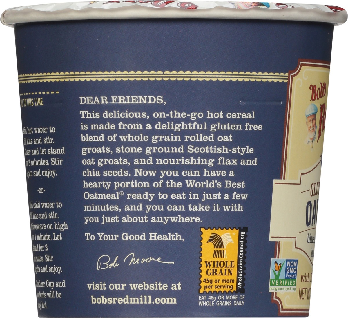 Whole grain foods for every meal of the day. To your good health. Bob Moore. Dear friends, this delicious, on-the-go hot cereal is made from a delightful gluten free blend of whole grain rolled oat gr…