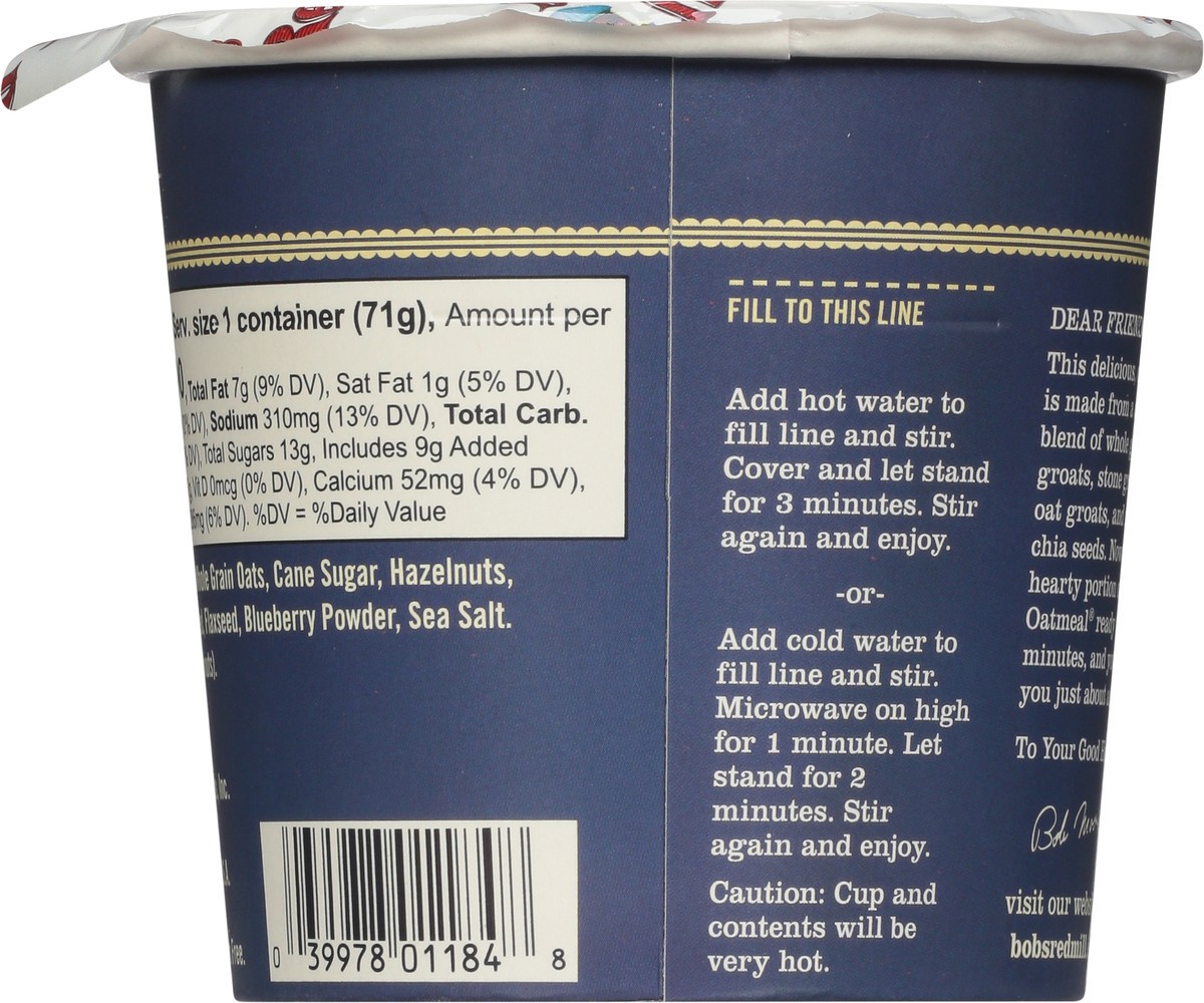 Bob's Red Mill Gluten Free Blueberry & Hazelnut Oatmeal Cup With Flax & Chia - 2.5 Oz