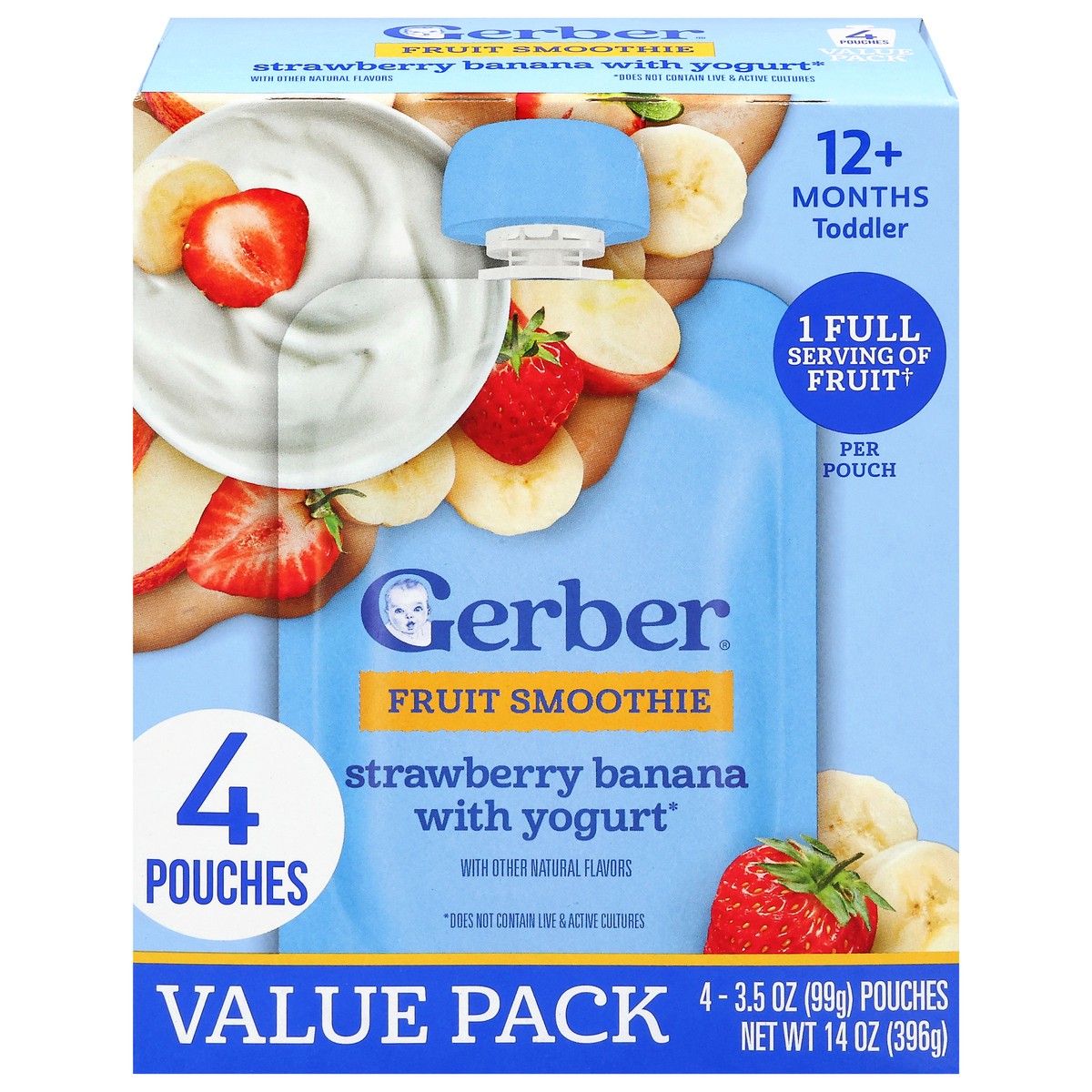 Gerber Fruit Smoothie Toddler Baby Food Pouch - Strawberry Banana With Yogurt