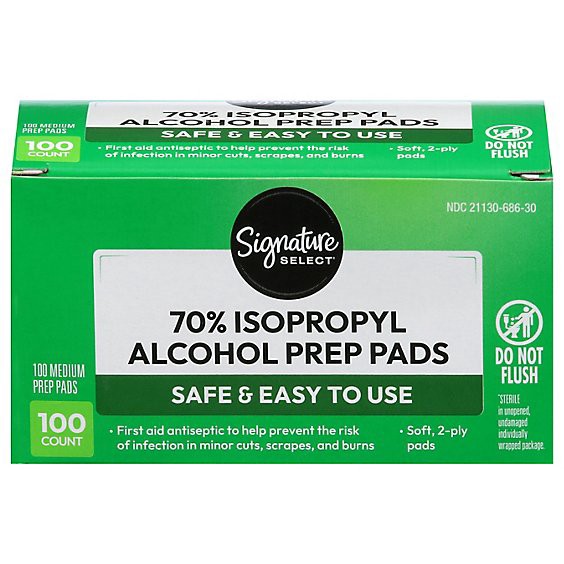 Signature Select/care Prep Pads Alcohol Isopropyl 70% - 100 Count