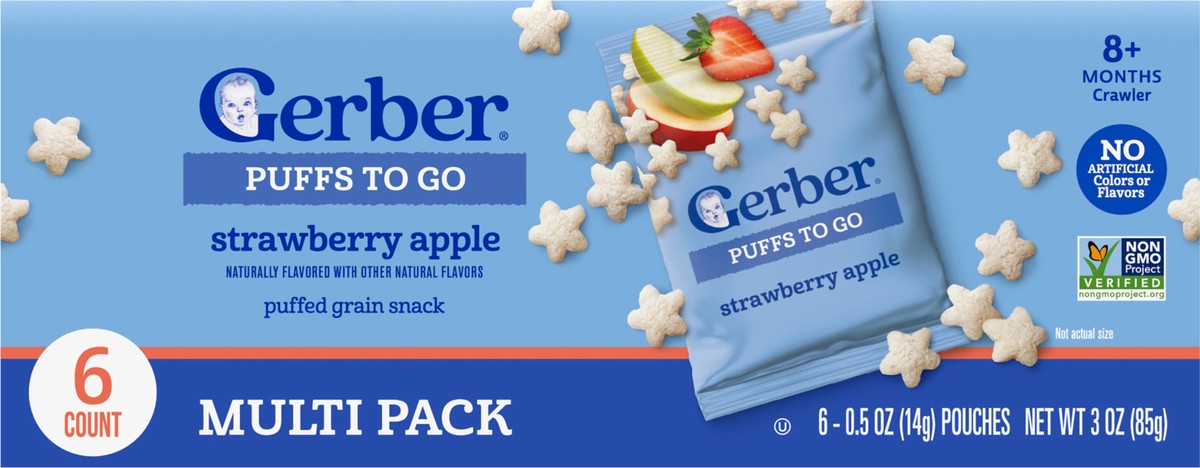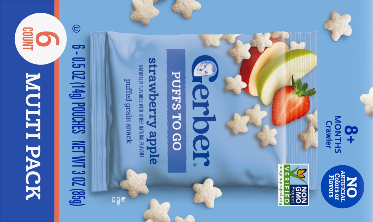 BABY ESSENTIALS: A Gerber favorite, Strawberry Apple Puffs now in an On-The Go 6ct (0.5z) multipack. Thoughtfully crafted for busy parents who want to provide their little ones with a nutritious snack…