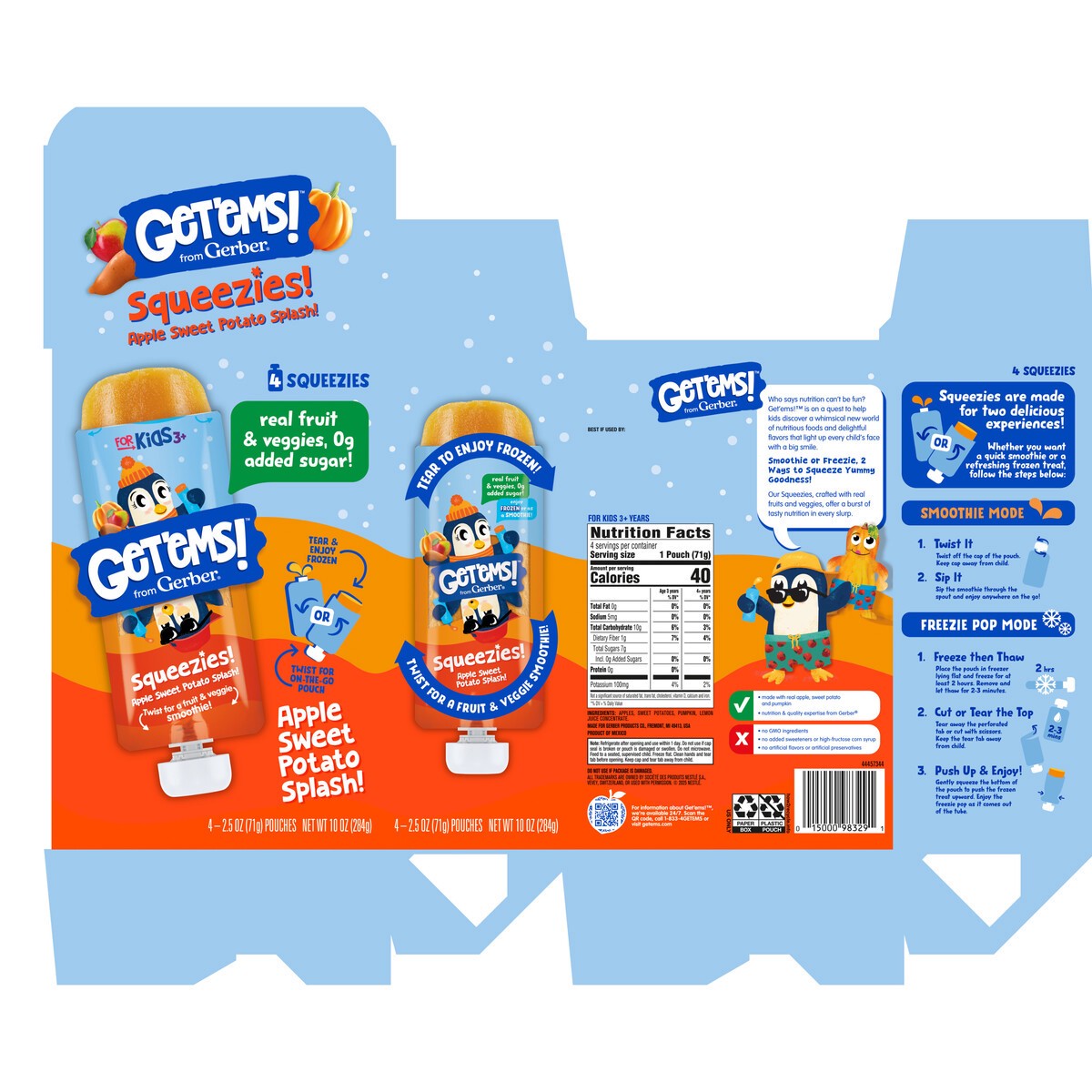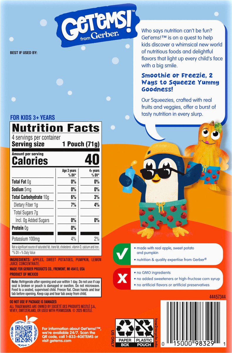 Introducing a Whimsical World of Nutrition: Get‘ems! Squeezie Pouch in Apple Sweet Potato flavor invites children to embark on an exciting journey, exploring a delightful new world filled with nutriti…