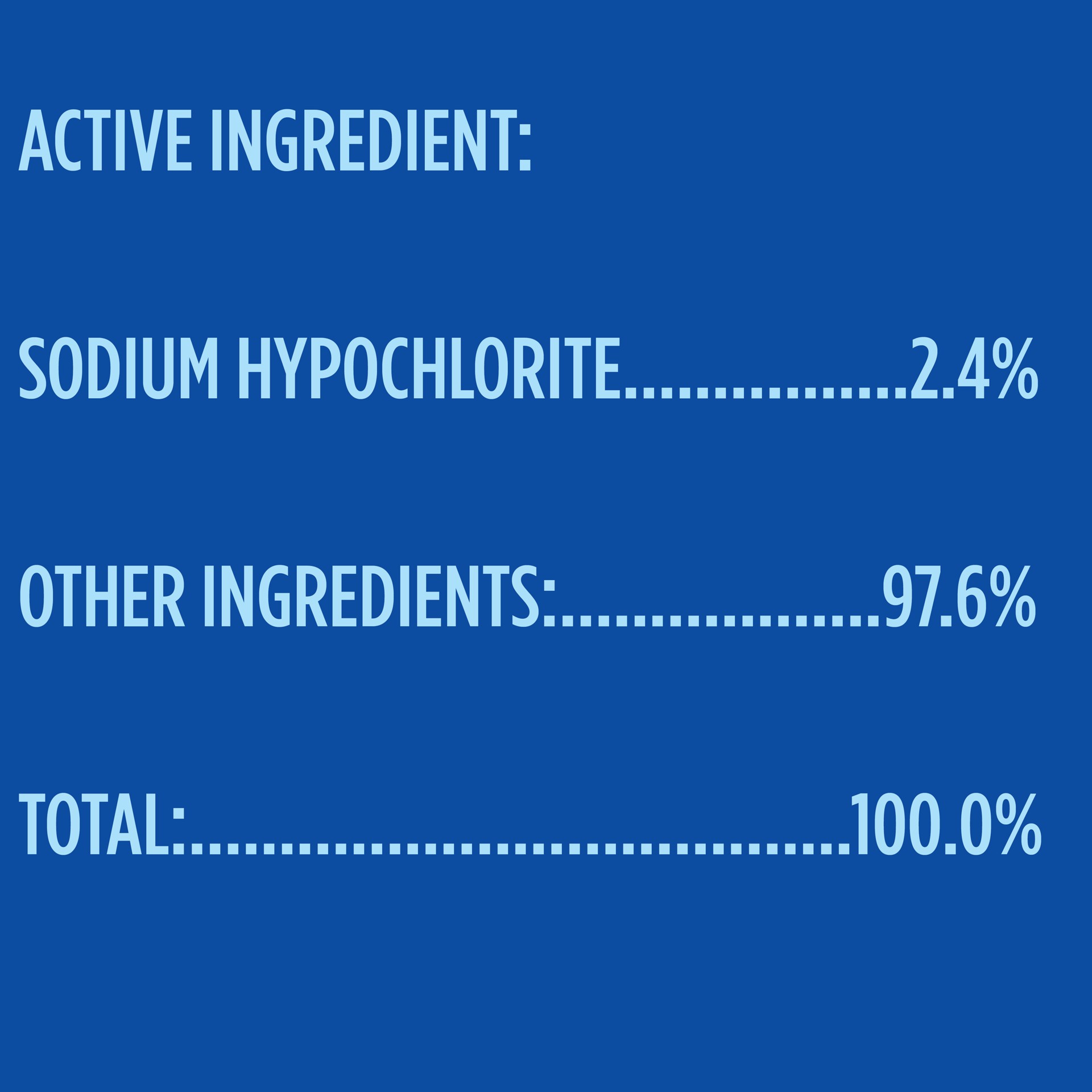 Active Ingredient: Sodium Hypochlorite 2.4%. Other Ingredients: 97.6%, Total 100.0%.