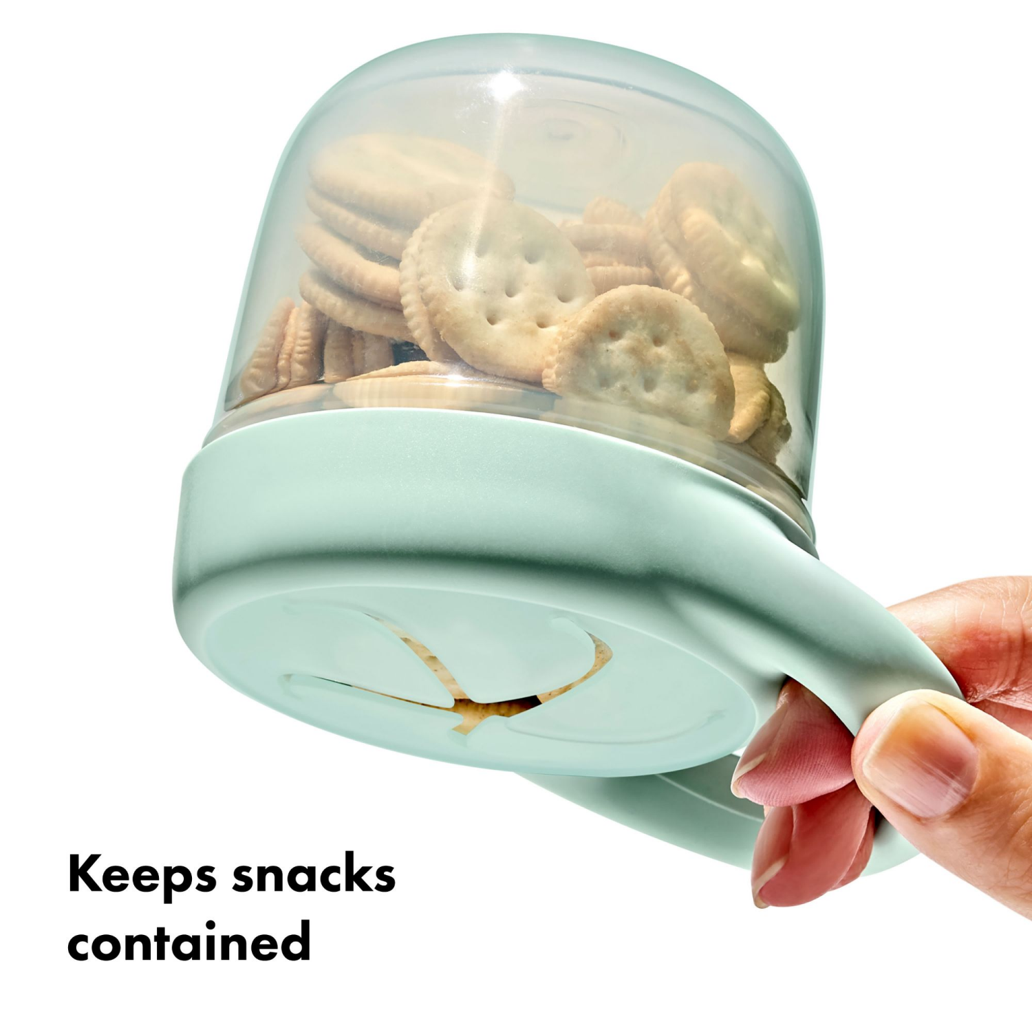 ndependent snacktime doesnt have to mean messy snacktime. The OXO Tot Snack Cup with Lid is designed with both children and parents in mind, with a flexible petal design that keeps snacks in, even if …