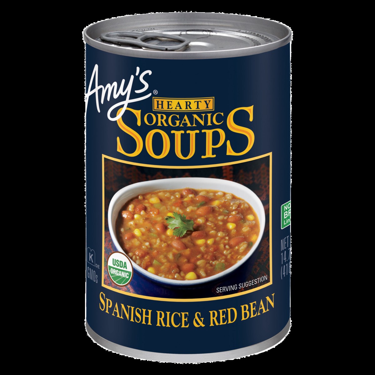 Amy's Organic Hearty Spanish Rice & Red Bean Soup is a truly hearty combination of organic brown rice, red beans, tomatoes, onions, bell peppers, corn and green chiles. All together, they're simmered …