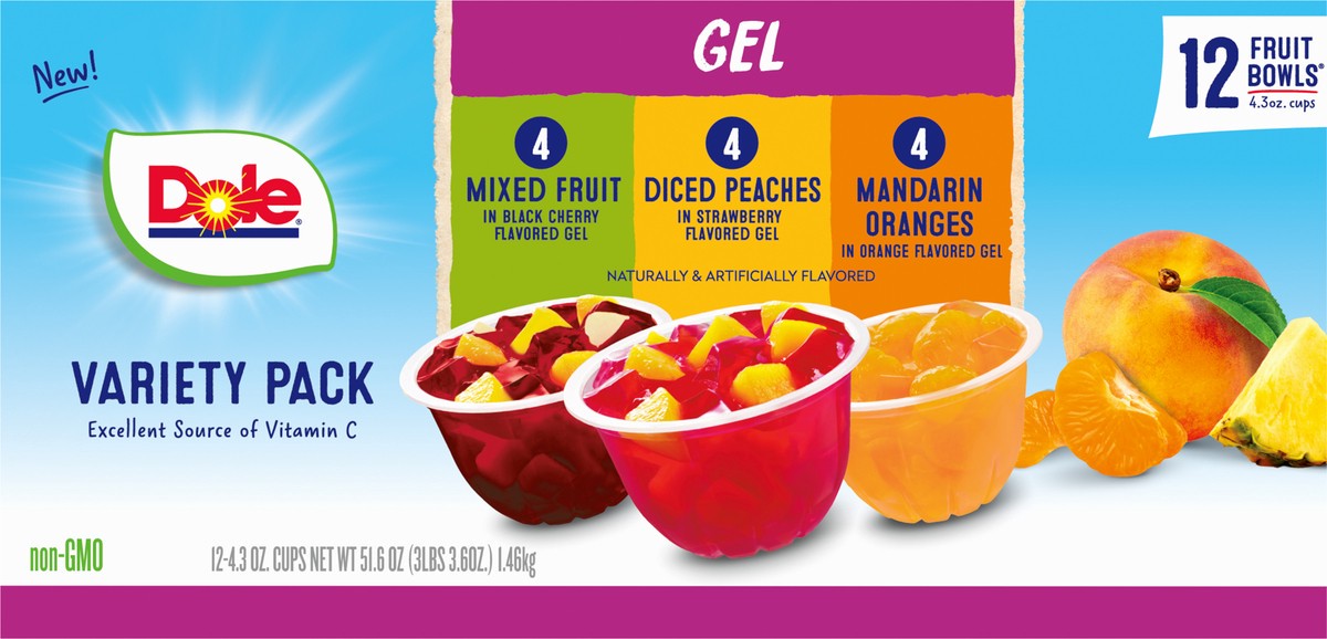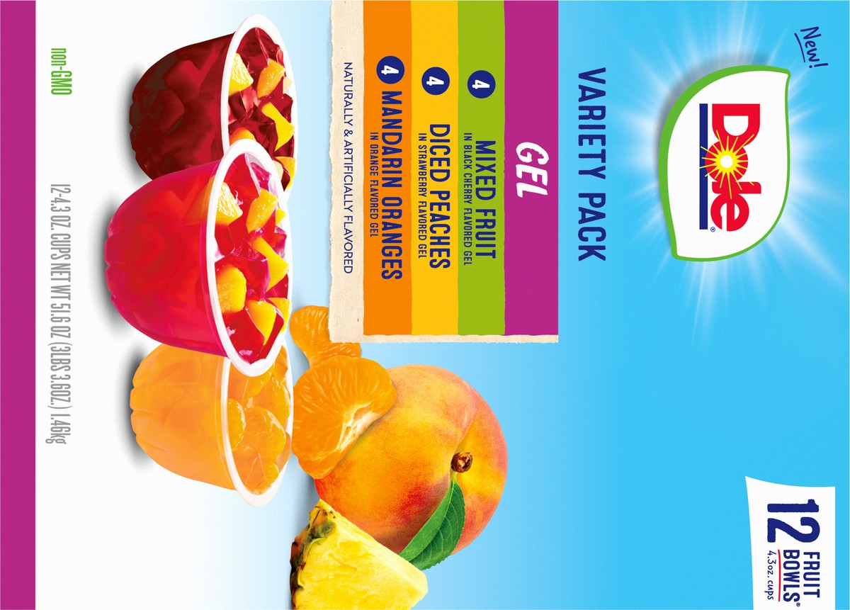 Dole Fruit in Gel Fruit Bowls Snacks Variety Pack 12 - 4.3 oz Cups