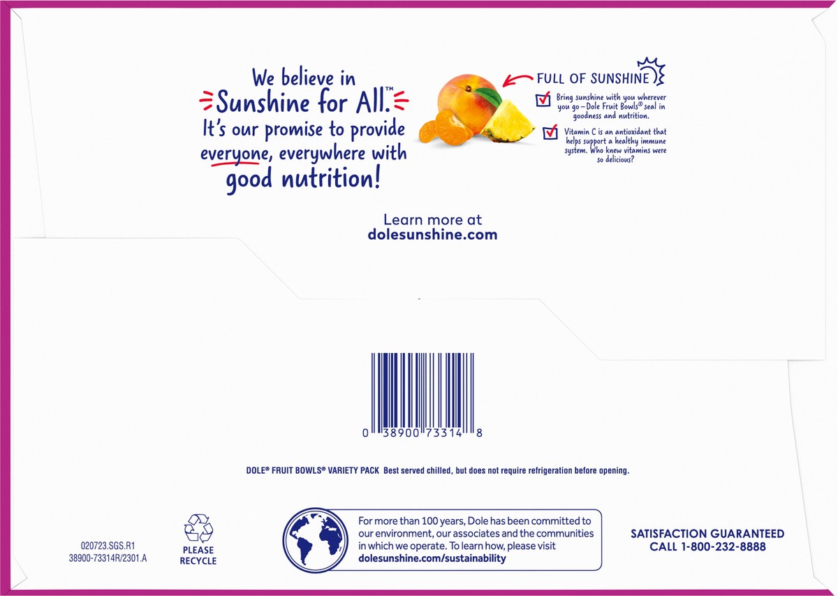 New! We believe in Sunshine for All. It's our promise to provide everyone, everywhere with good nutrition! Full of sunshine. Bring sunshine with you wherever you go - Dole Fruit Bowls seal in goodness…