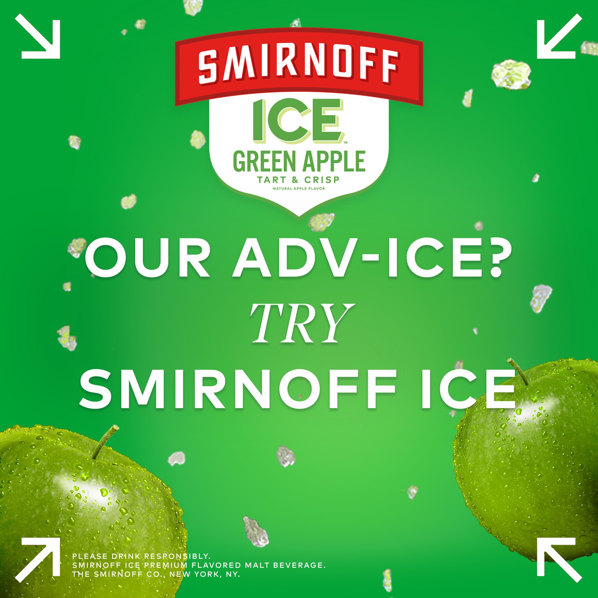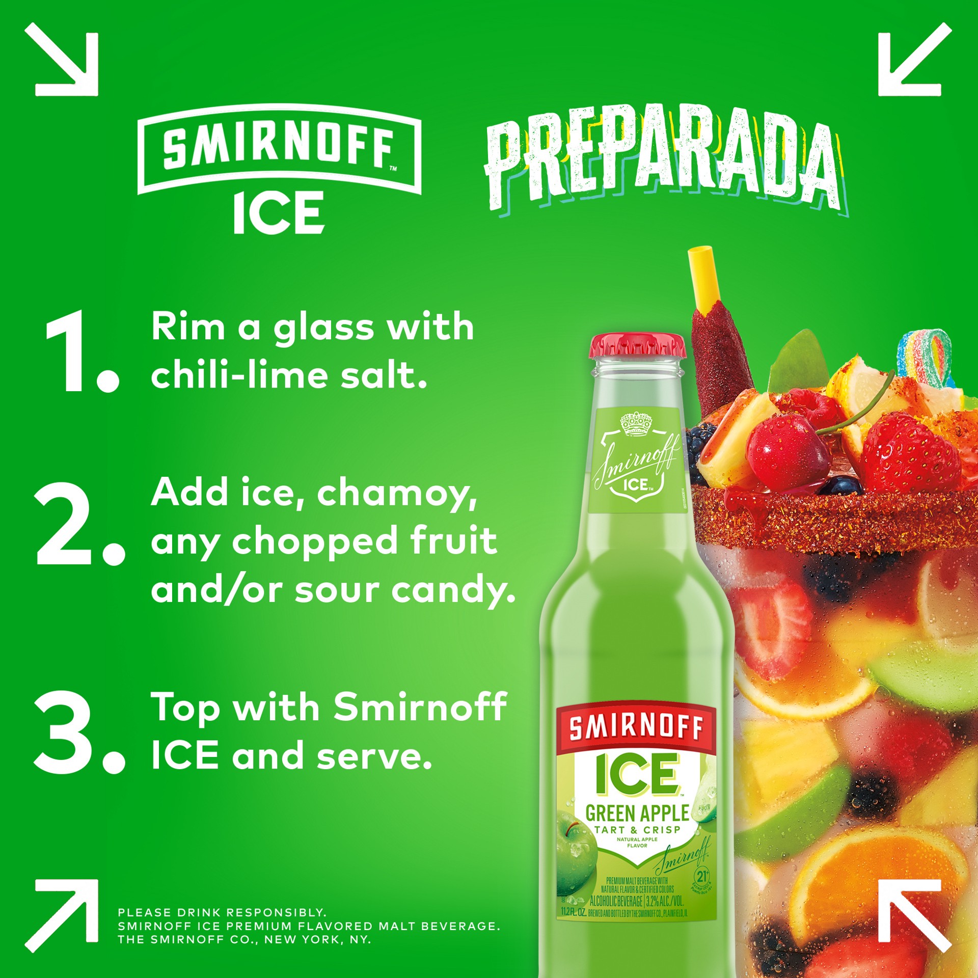 Smirnoff Ice Green Apple is a perfect blend of sweet and tart. The crisp green apple flavor gives the drinker the sensation of biting into a fresh, juicy green apple. A popular choice for house partieā¦