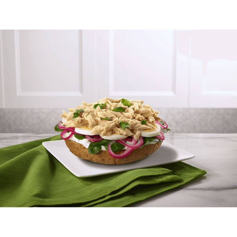 - 5 oz can of premium white tuna has larger, firmer pieces with fewer flakes